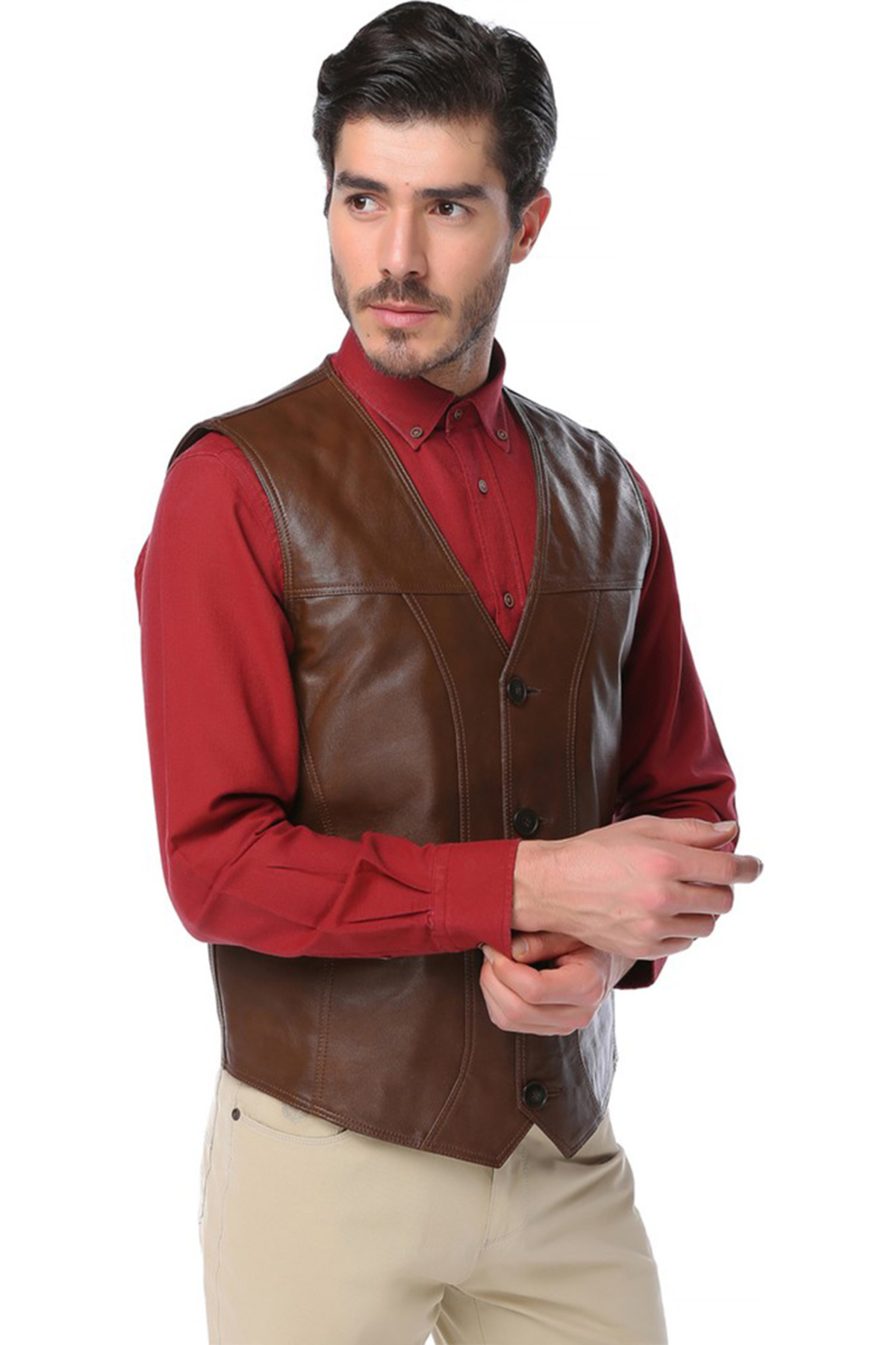 Şişme Spor Erkek Deri Yelek Taba Kombinasyon Şişme Spor Erkek Deri Yelek Taba Kombinasyon 2631 56-58