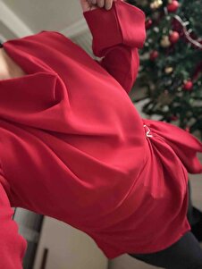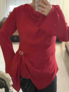 Uzun Kollu Degaje Yaka Metal Aksesuarlı Büzgülü Asimetrik Bluz Uzun Kollu Degaje Yaka Metal Aksesuarlı Büzgülü Asimetrik Bluz 6WAK60210UW 44