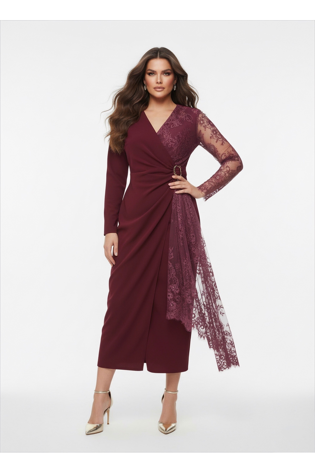 İthal Krep & Dantel Kumaş Toka Detaylı Astarlı Özel Tasarım Maxi Elbise İthal Krep & Dantel Kumaş Toka Detaylı Astarlı Özel Tasarım Maxi Elbise 2631ELBS 2XL