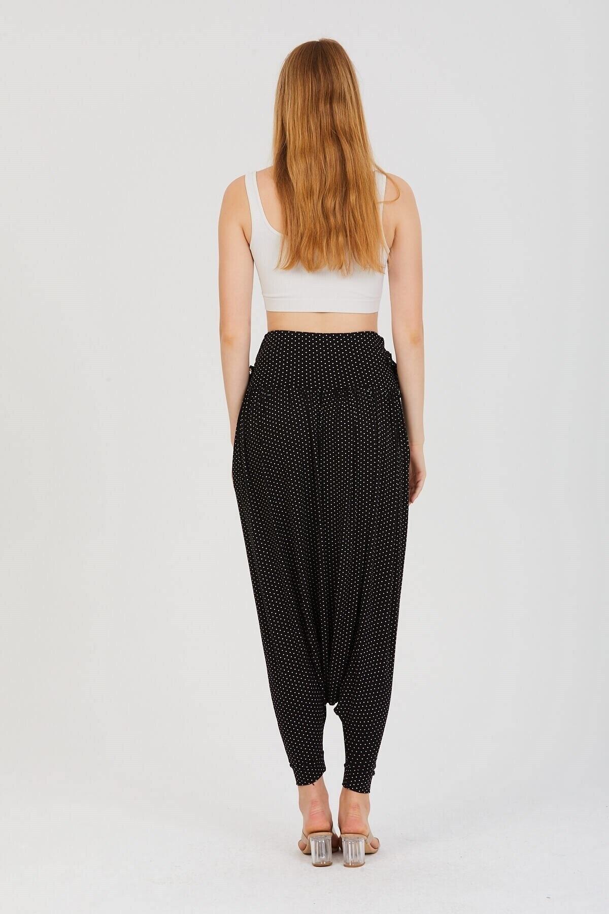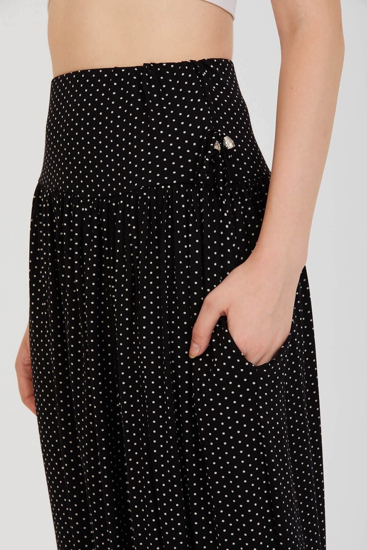 Kadın Siyah Puantiye Desenli Beli Lastikli Penye Şalvar Kadın Siyah Puantiye Desenli Beli Lastikli Penye Şalvar LSD22P0090 Standart