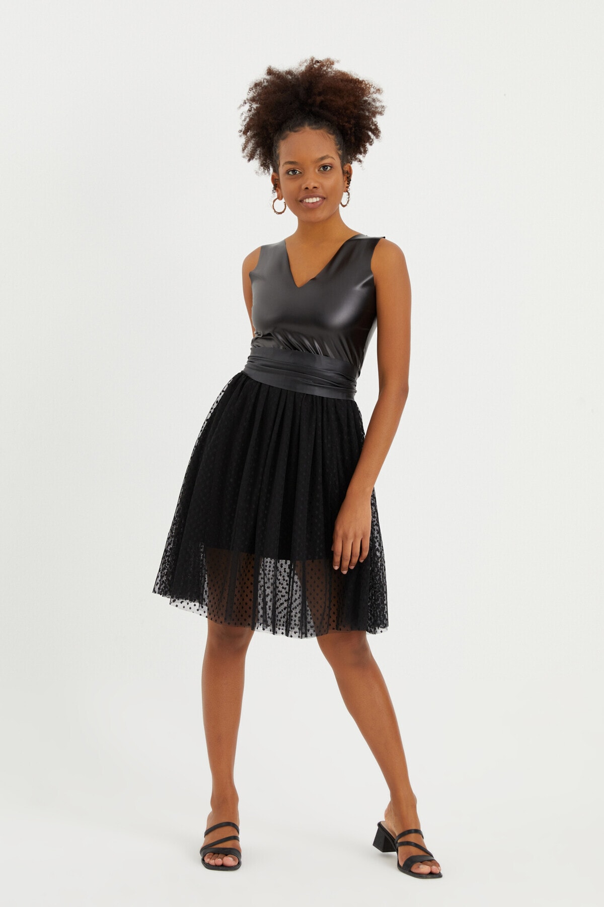 Kadın Siyah Çift Katlı Elbise Kadın Siyah Çift Katlı Elbise EBL2802 48