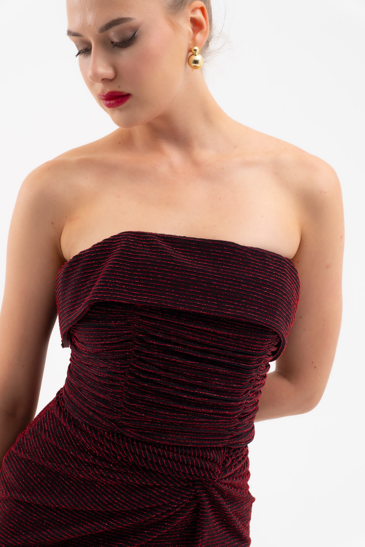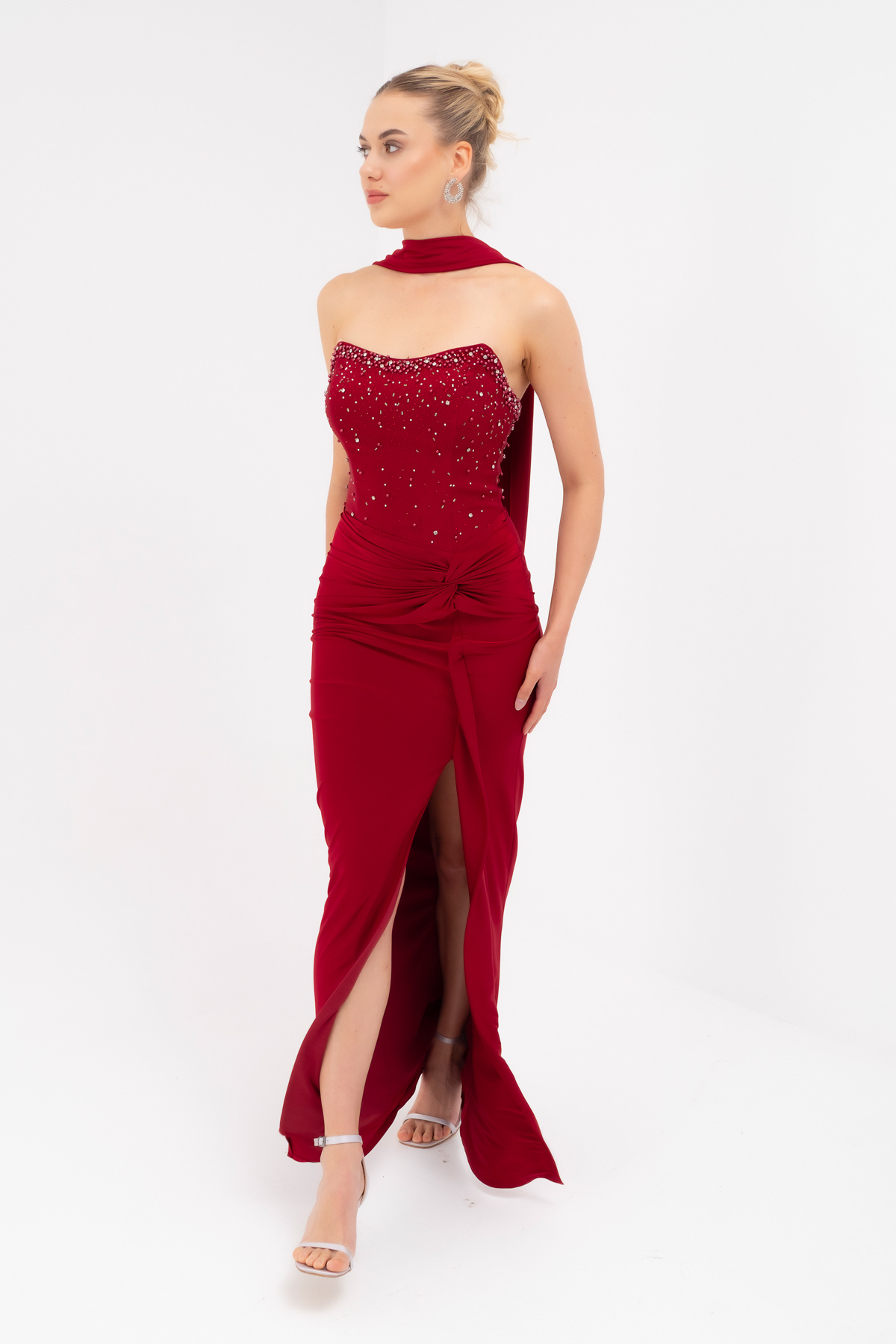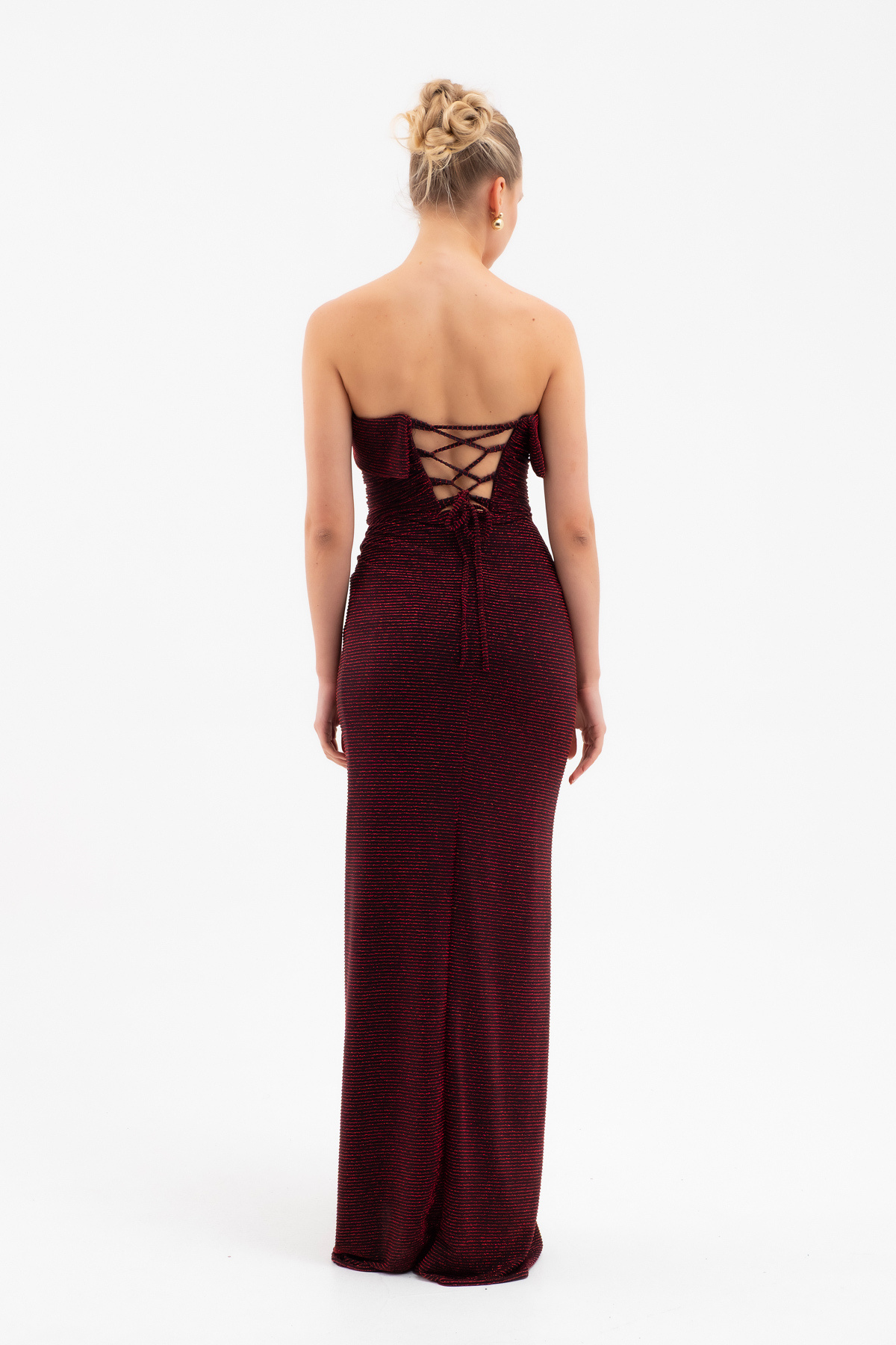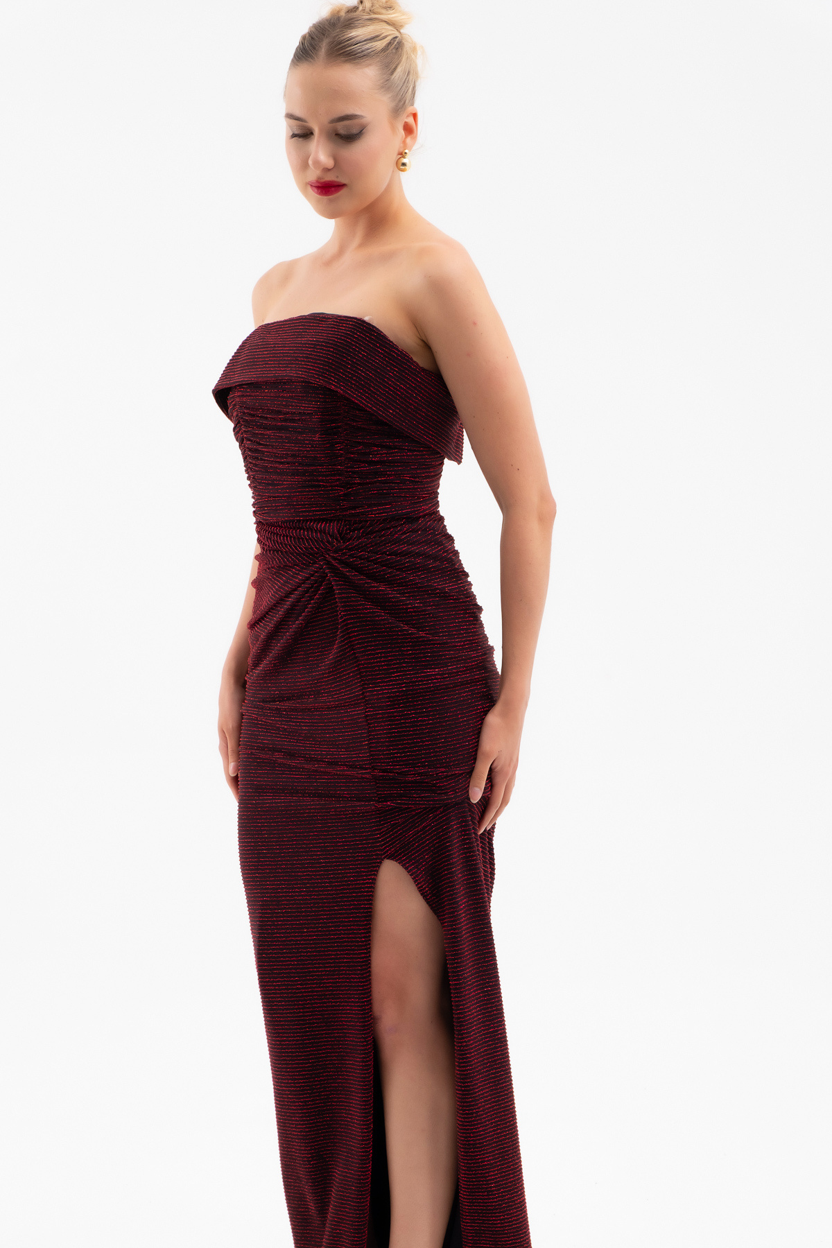 Kadın Bordo Straplez Yaka Düğüm Detay Uzun Abiye Elbise Kadın Bordo Straplez Yaka Düğüm Detay Uzun Abiye Elbise 25K711002 40