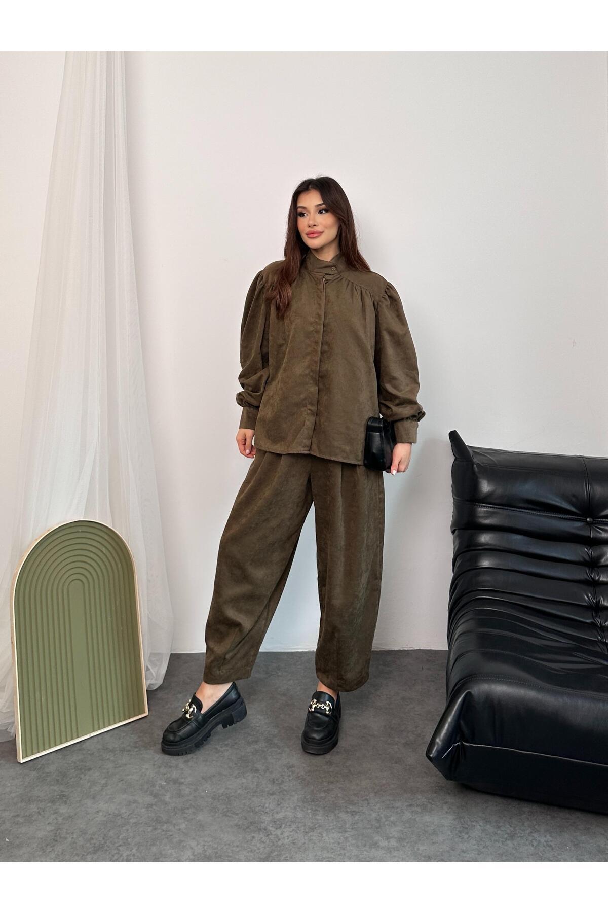 Kadın Haki Oversize Gömlek ve Palazzo Alt-Üst Takım | Woman Kadın Haki Oversize Gömlek ve Palazzo Alt-Üst Takım | Woman zll-25 L