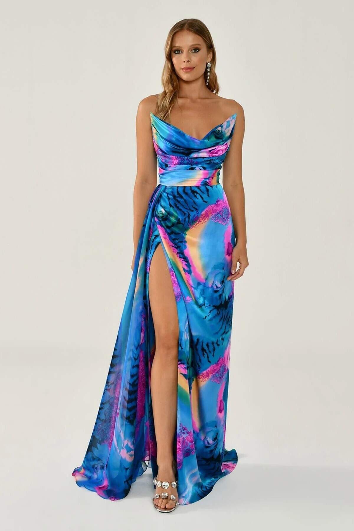 Düşük Omuz Drapeli Simli Dantel Uzun Elbise Düşük Omuz Drapeli Simli Dantel Uzun Elbise ABIYE ALFABETA*7251 38