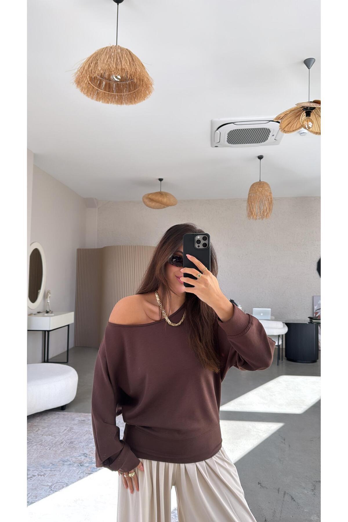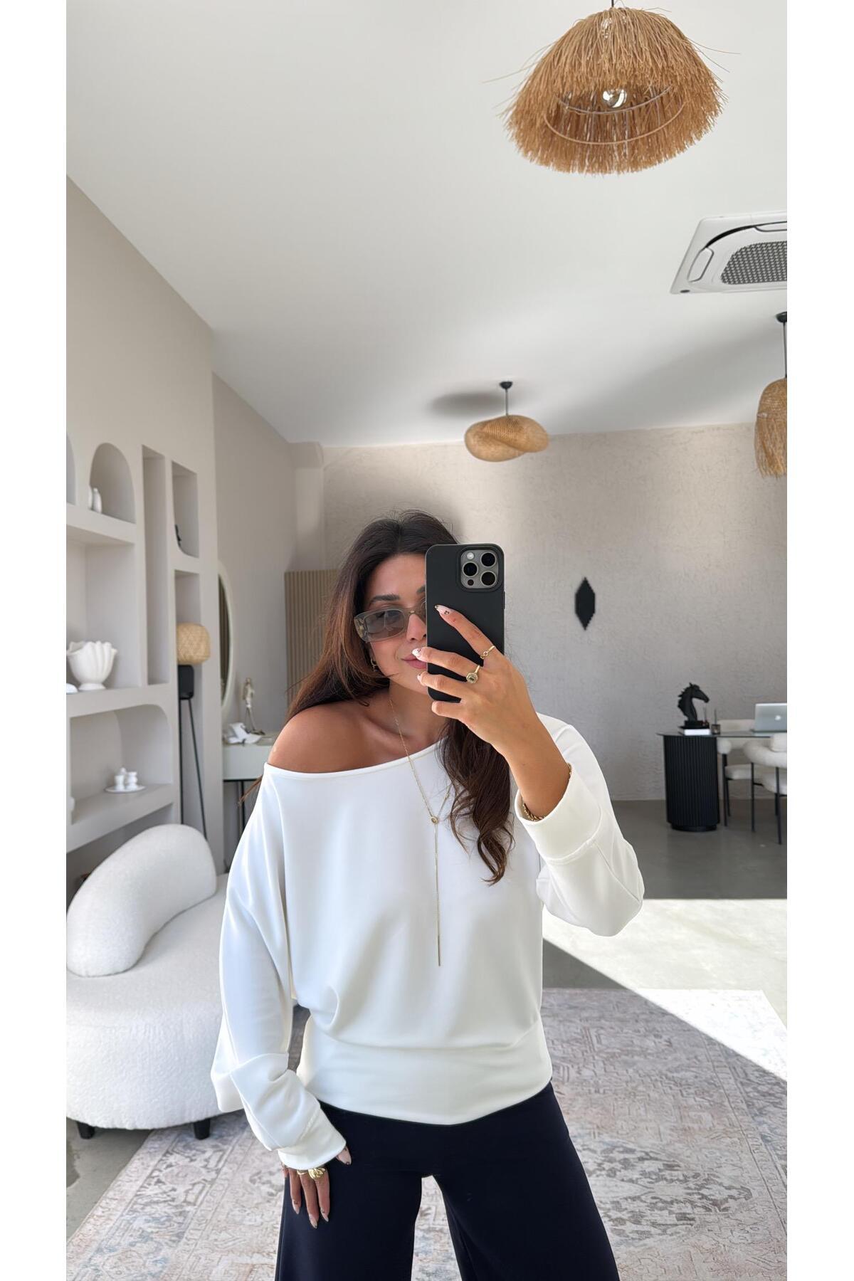 Beyaz Kayık Yaka Modal Sweat Bluz Beyaz Kayık Yaka Modal Sweat Bluz TX5B73BAD85413 XL