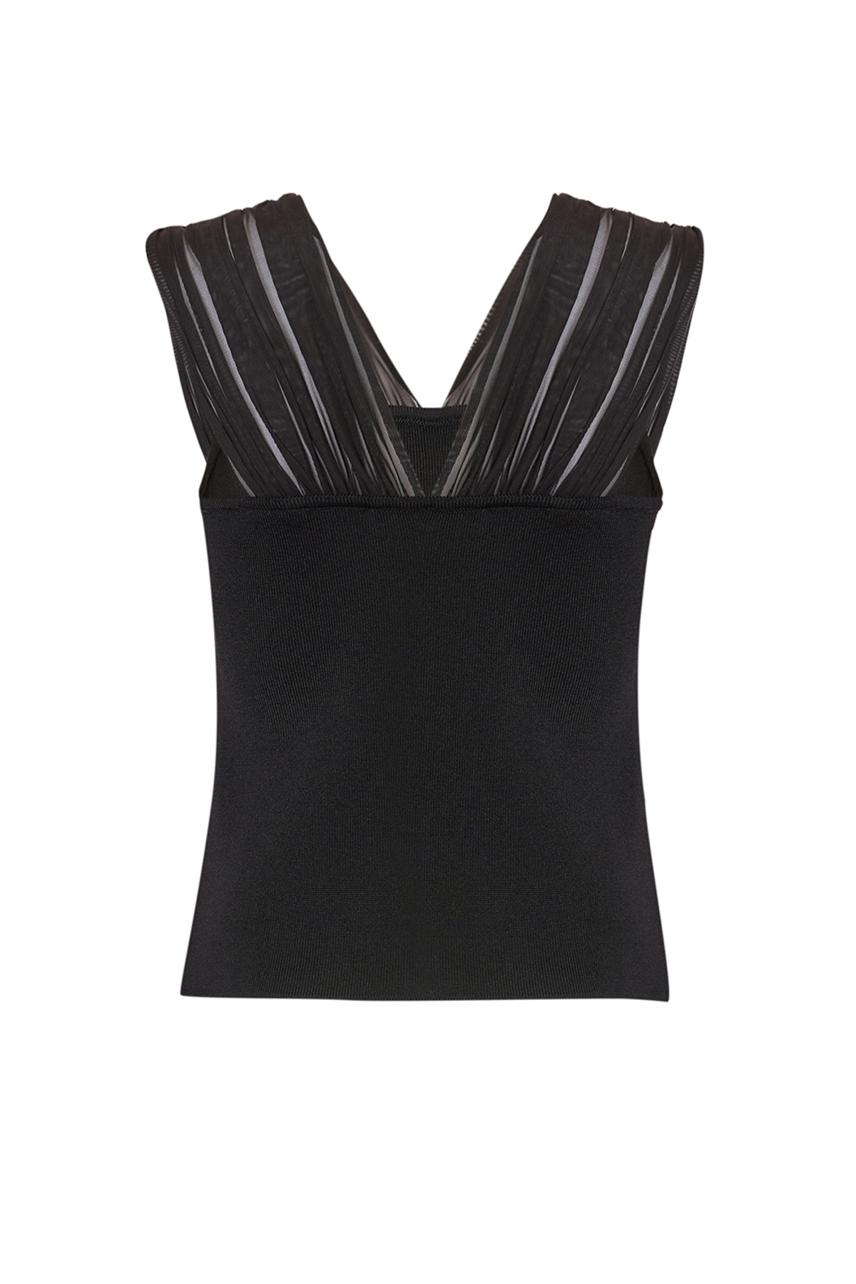 Piliseli Tül Detaylı Kolsuz Triko Bluz Piliseli Tül Detaylı Kolsuz Triko Bluz E25K05123012 L