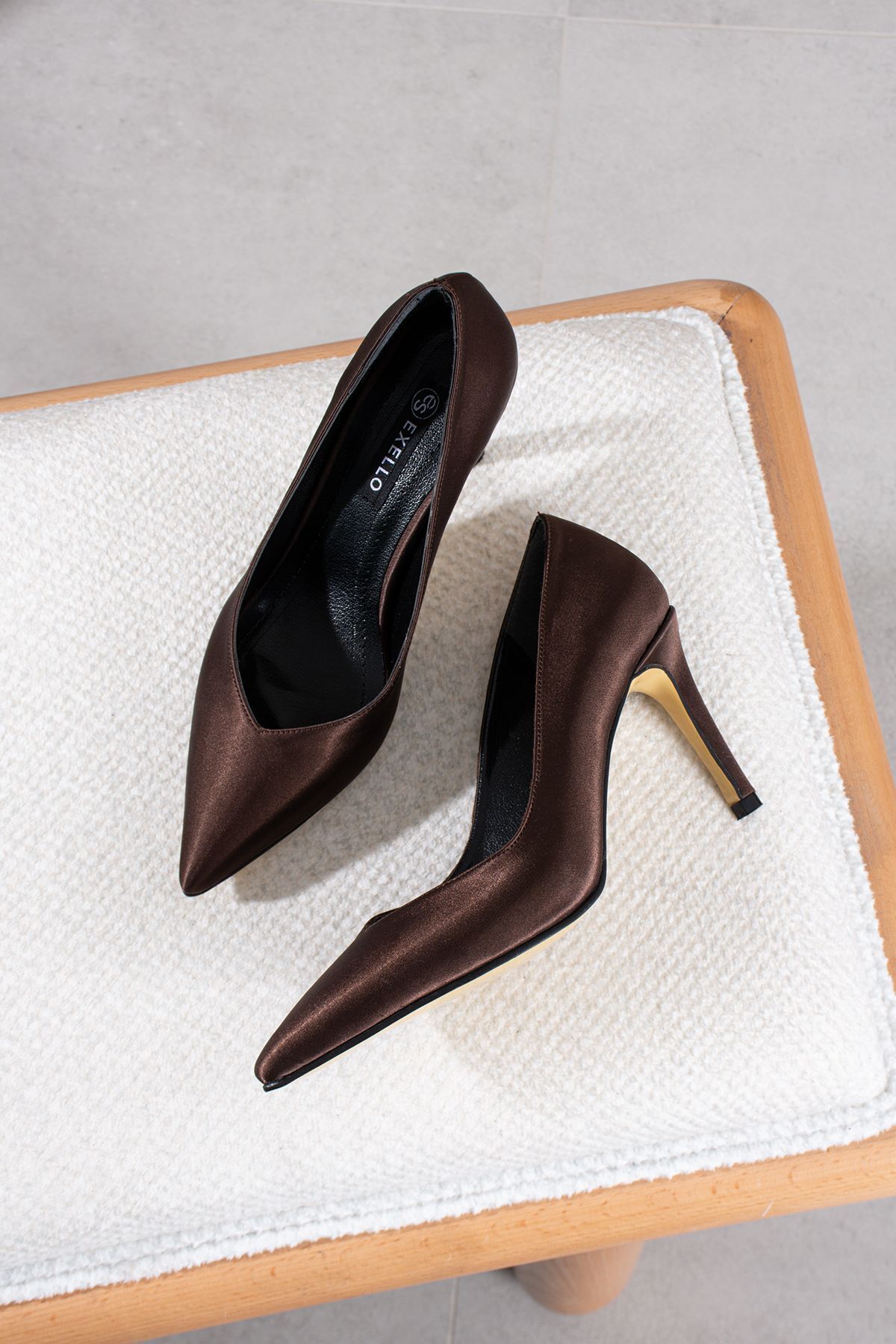 Hills İnce Topuklu Kahve Saten Stiletto Hills İnce Topuklu Kahve Saten Stiletto 630EXES 41