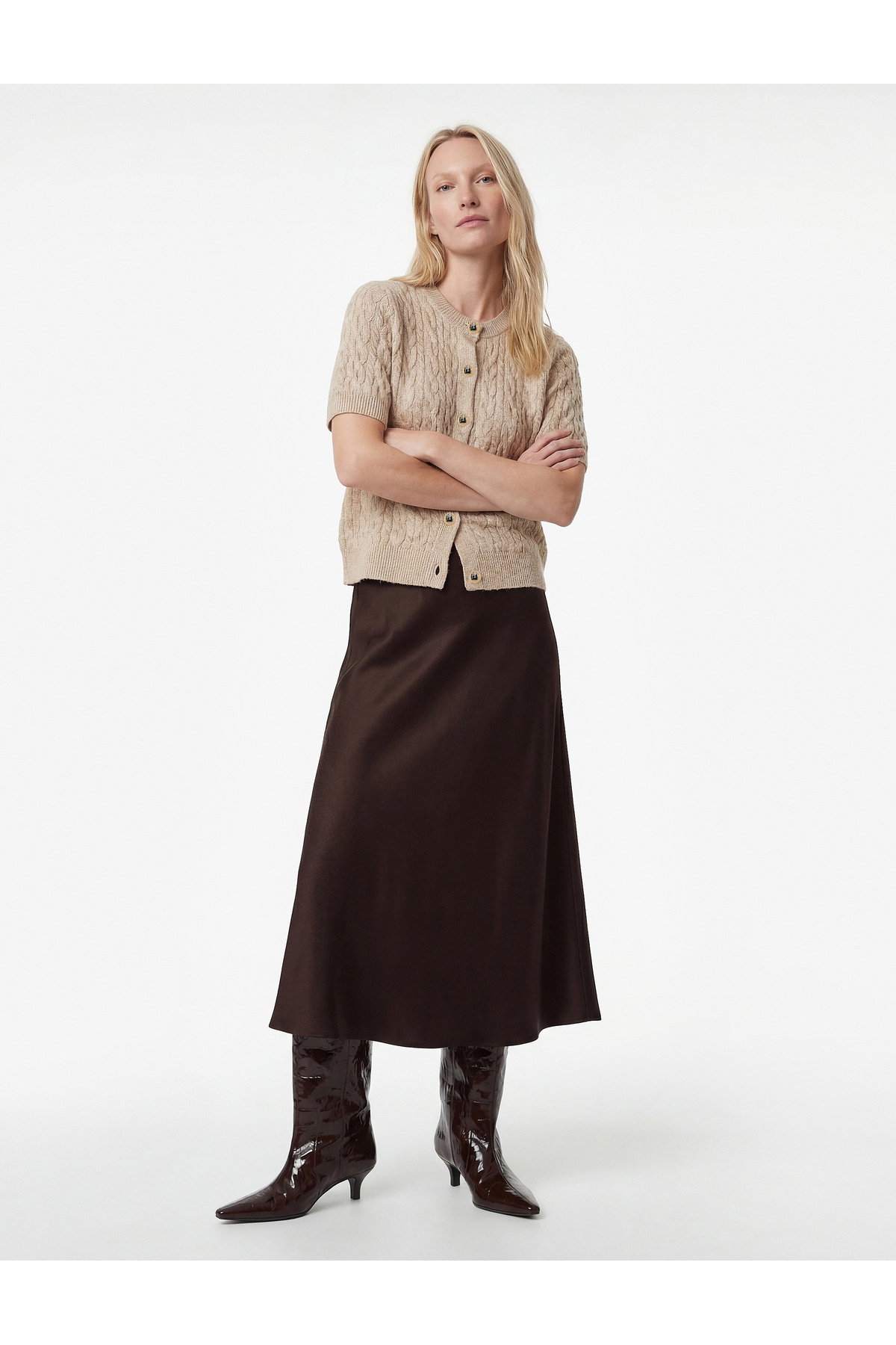 X Melis Ağazat - Düğmeli Bisiklet Yaka Kısa Kollu Saç Örgü Hırka X Melis Ağazat - Düğmeli Bisiklet Yaka Kısa Kollu Saç Örgü Hırka 6WAK90466HT XL