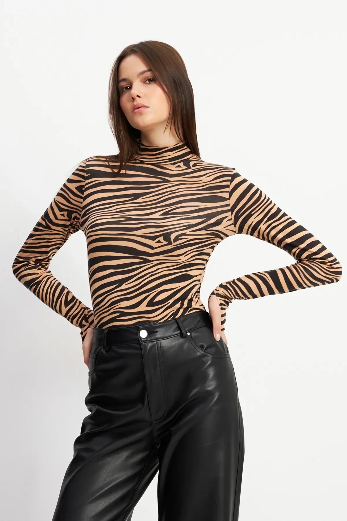 Camel Zebra Desenli Parmak Detaylı Body Camel Zebra Desenli Parmak Detaylı Body PARMAK001 L