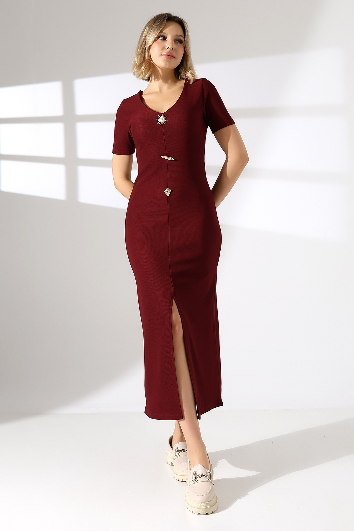 Kahverengi Midi Deri Elbise – Yırtmaçlı ve Tokalı Model Kahverengi Midi Deri Elbise – Yırtmaçlı ve Tokalı Model 360031 XL
