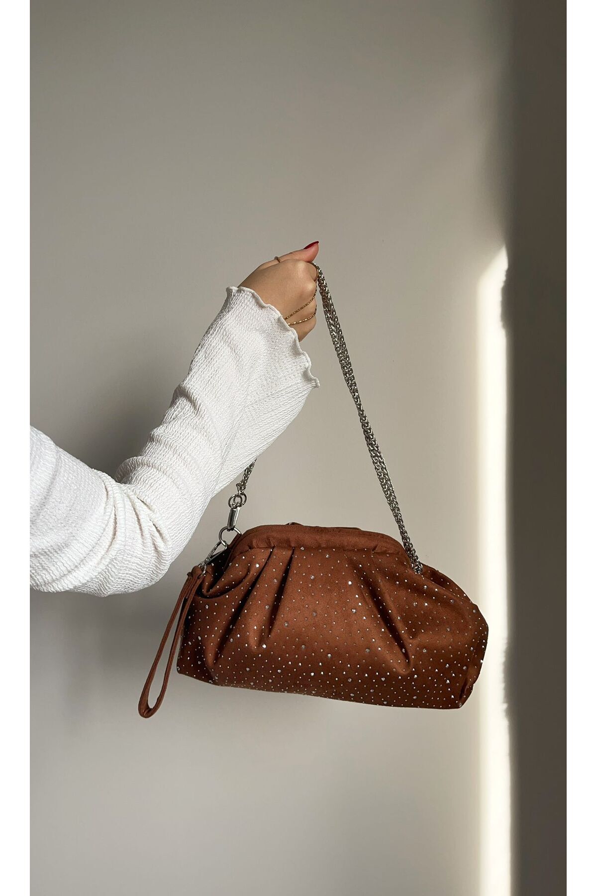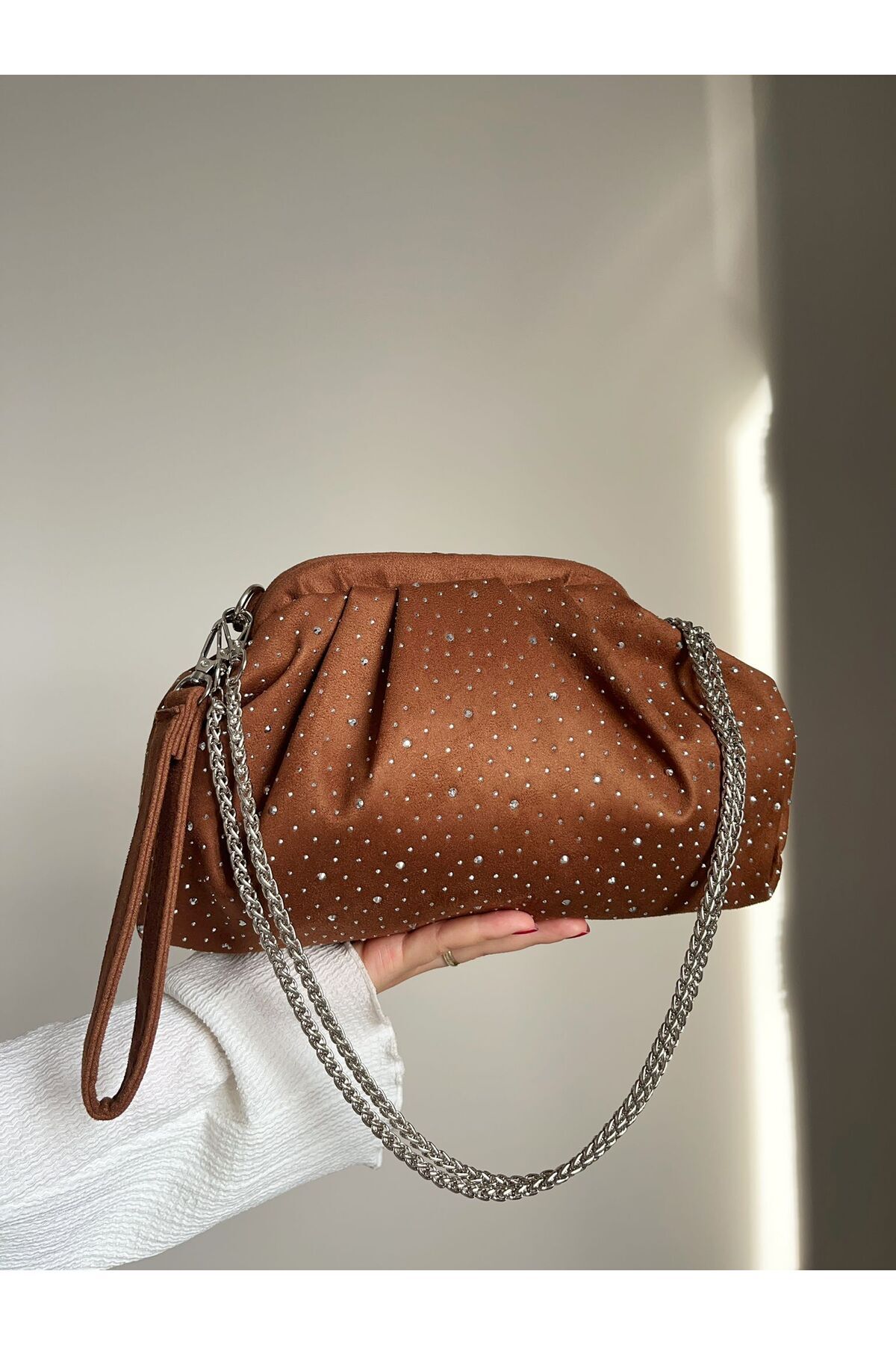 Kadın Süet Taşlı Burslu El ve Omuz Çantası Kadın Süet Taşlı Burslu El ve Omuz Çantası SWG-0067 تک سایز