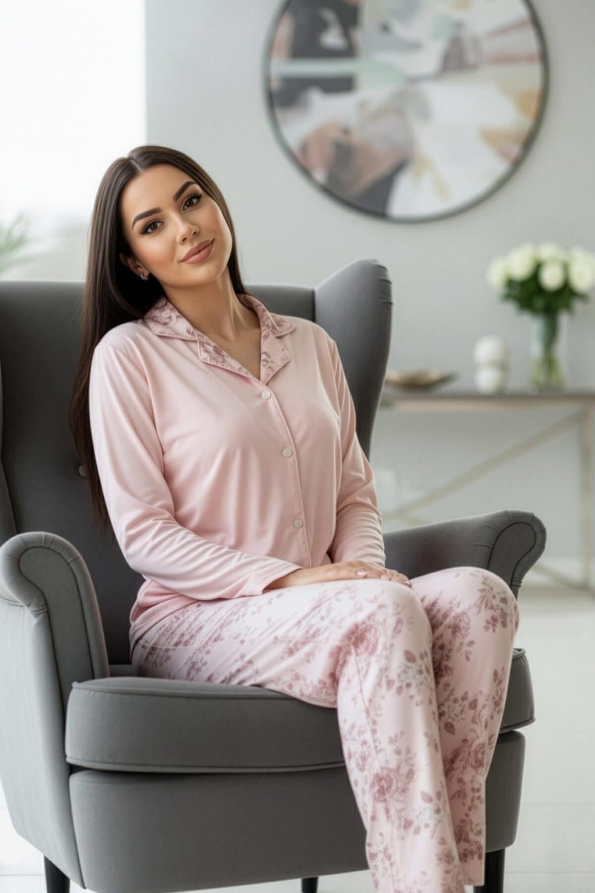Mercan Florado Exclusive Önden Düğmeli Uzun Kollu Kadın Pijama Takımı Mercan Florado Exclusive Önden Düğmeli Uzun Kollu Kadın Pijama Takımı 5011 2XL