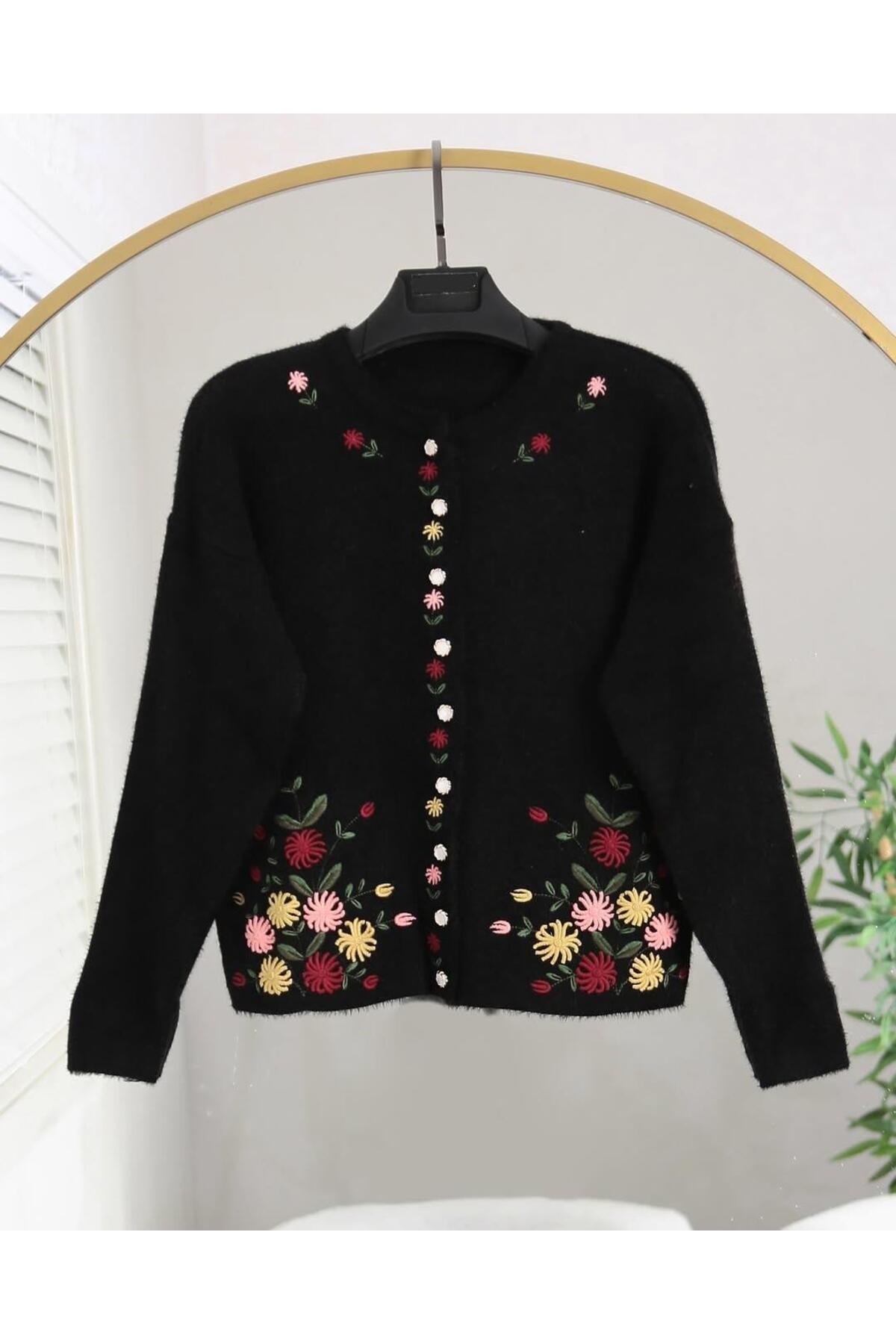 Çiçek Nakış İşlemeli İnci Düğmeli Hırka Çiçek Nakış İşlemeli İnci Düğmeli Hırka LAVCARDİGAN30212010 Standart