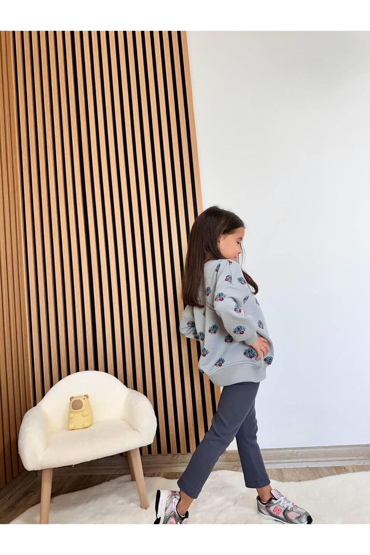 Kız Çocuk Pamuklu Gri Çiçek Desenli Sweatshirt & Tayt Takım Kız Çocuk Pamuklu Gri Çiçek Desenli Sweatshirt & Tayt Takım Mg26Ekım139 7-8 Yaş