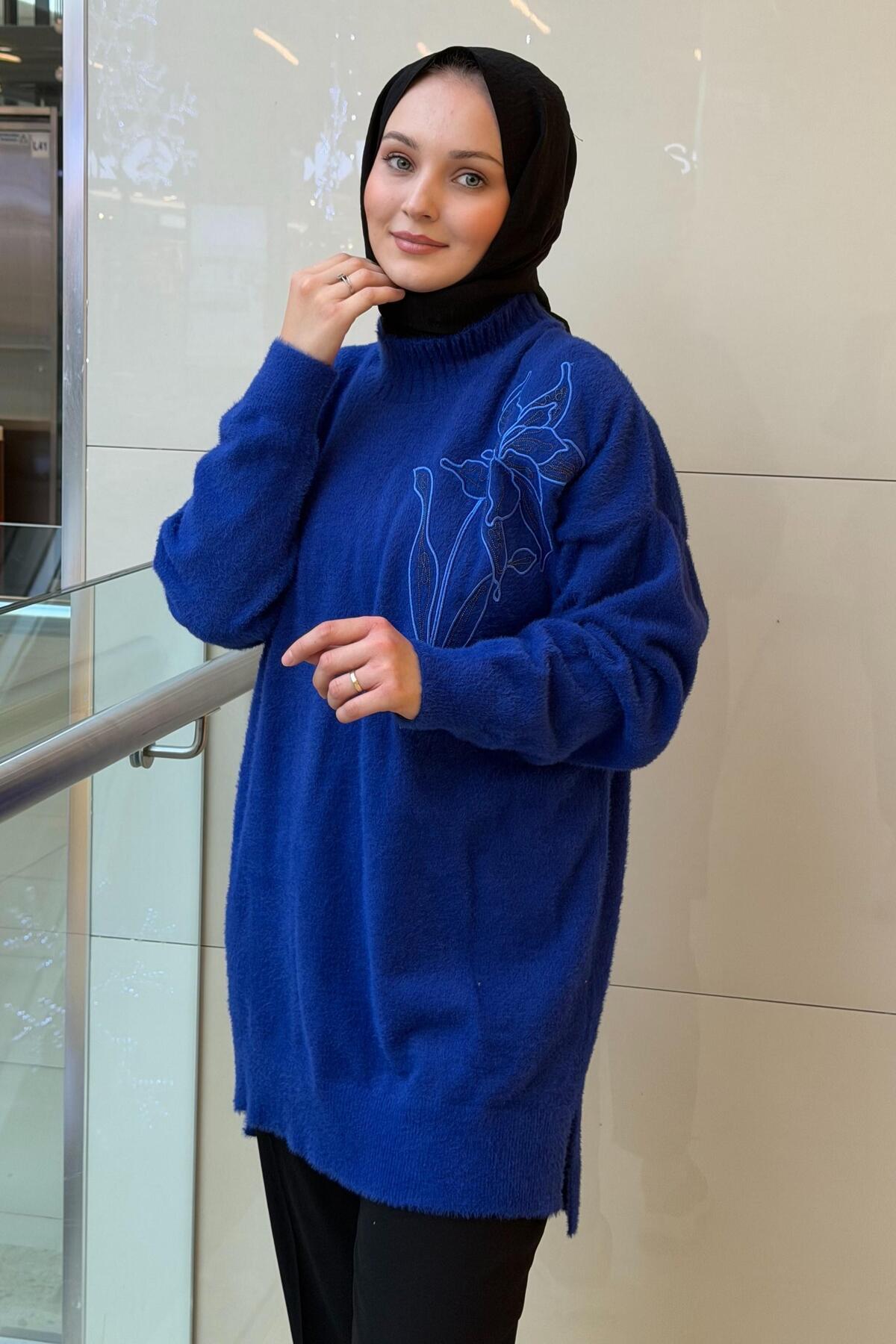Sıfır Yaka Çiçek Nakış İşlemeli Angora Tunik Sıfır Yaka Çiçek Nakış İşlemeli Angora Tunik 26KNUSTNK7004 Standart
