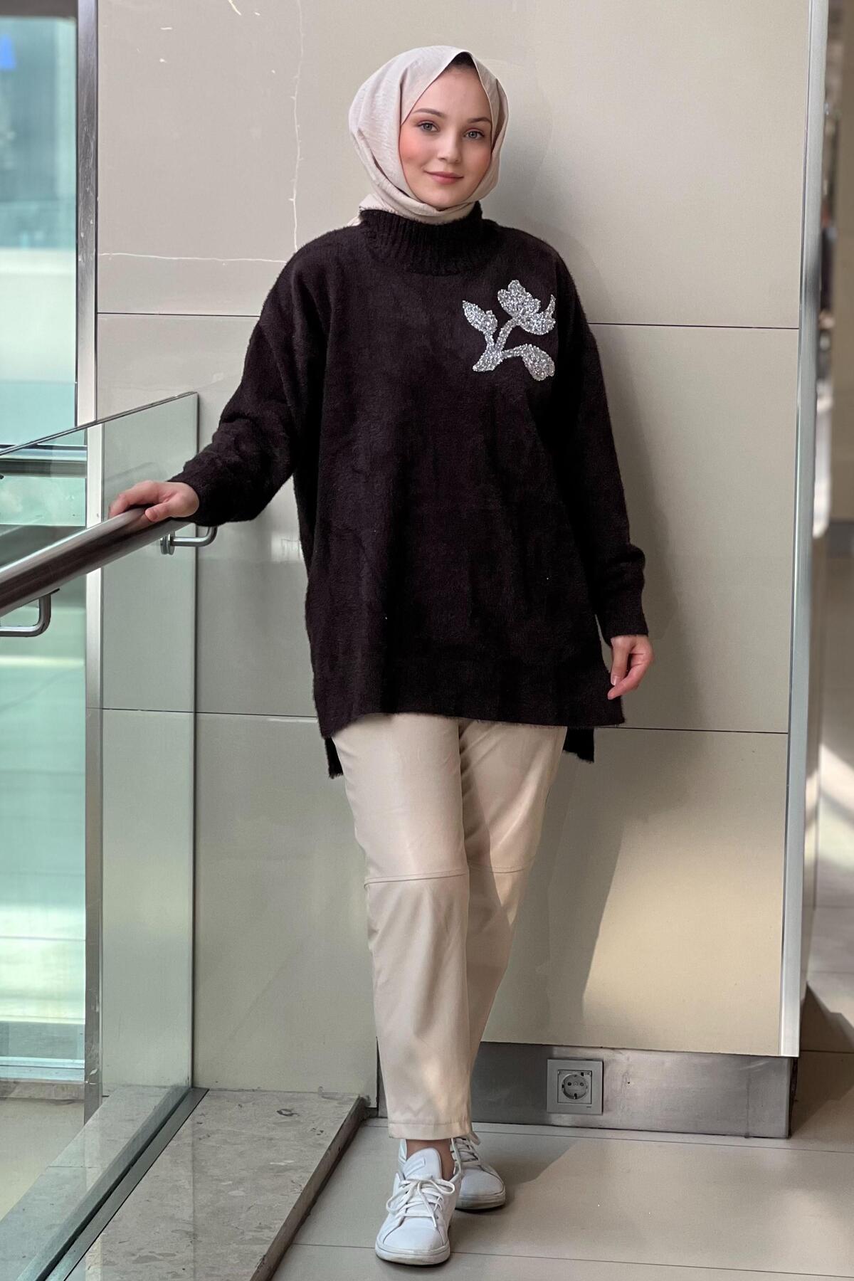 Sıfır Yaka Lale Taş İşlemeli Angora Tunik Sıfır Yaka Lale Taş İşlemeli Angora Tunik 26KNUSTNK7001 Standart