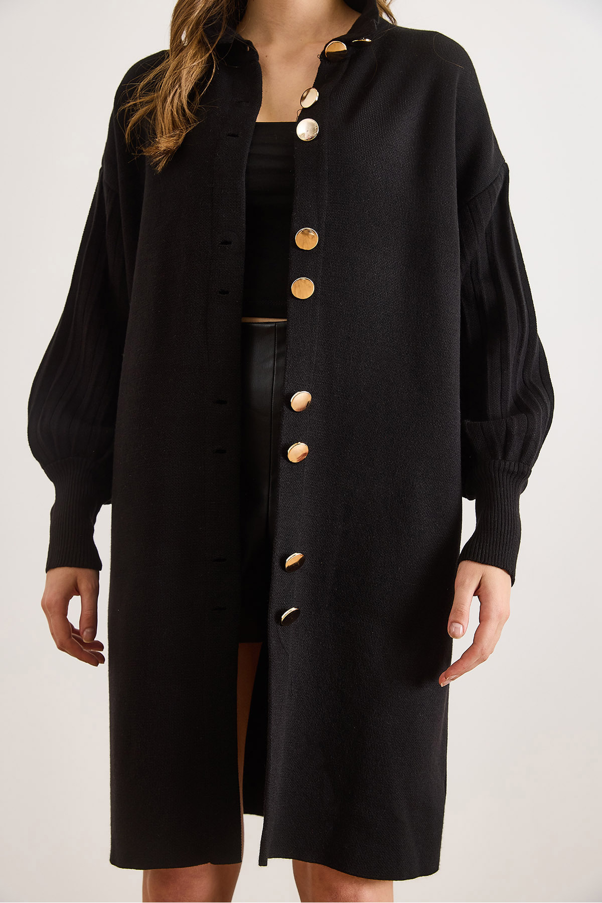 Kadın Siyah Düğme Detaylı Palto Hırka HRK-19000445 Kadın Siyah Düğme Detaylı Palto Hırka HRK-19000445 تک سایز