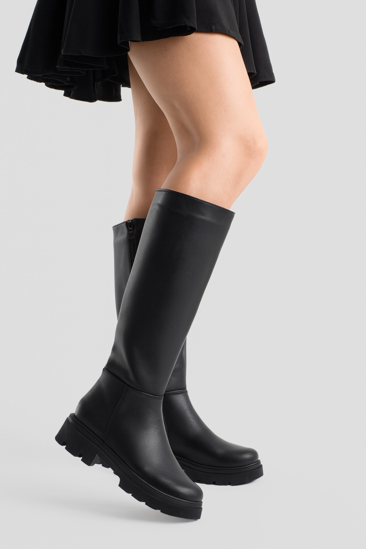 Kadın Deri Çizme Kalın Tabanlı Fermuarlı Siyah Morre Kadın Deri Çizme Kalın Tabanlı Fermuarlı Siyah Morre 52-39-01 40