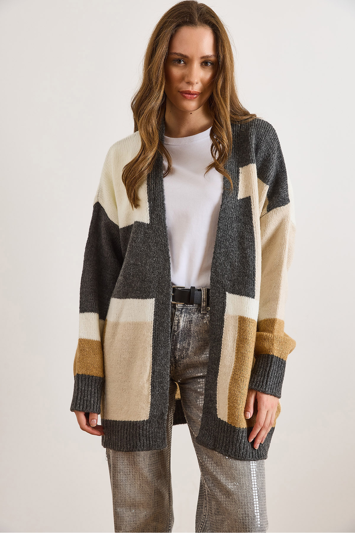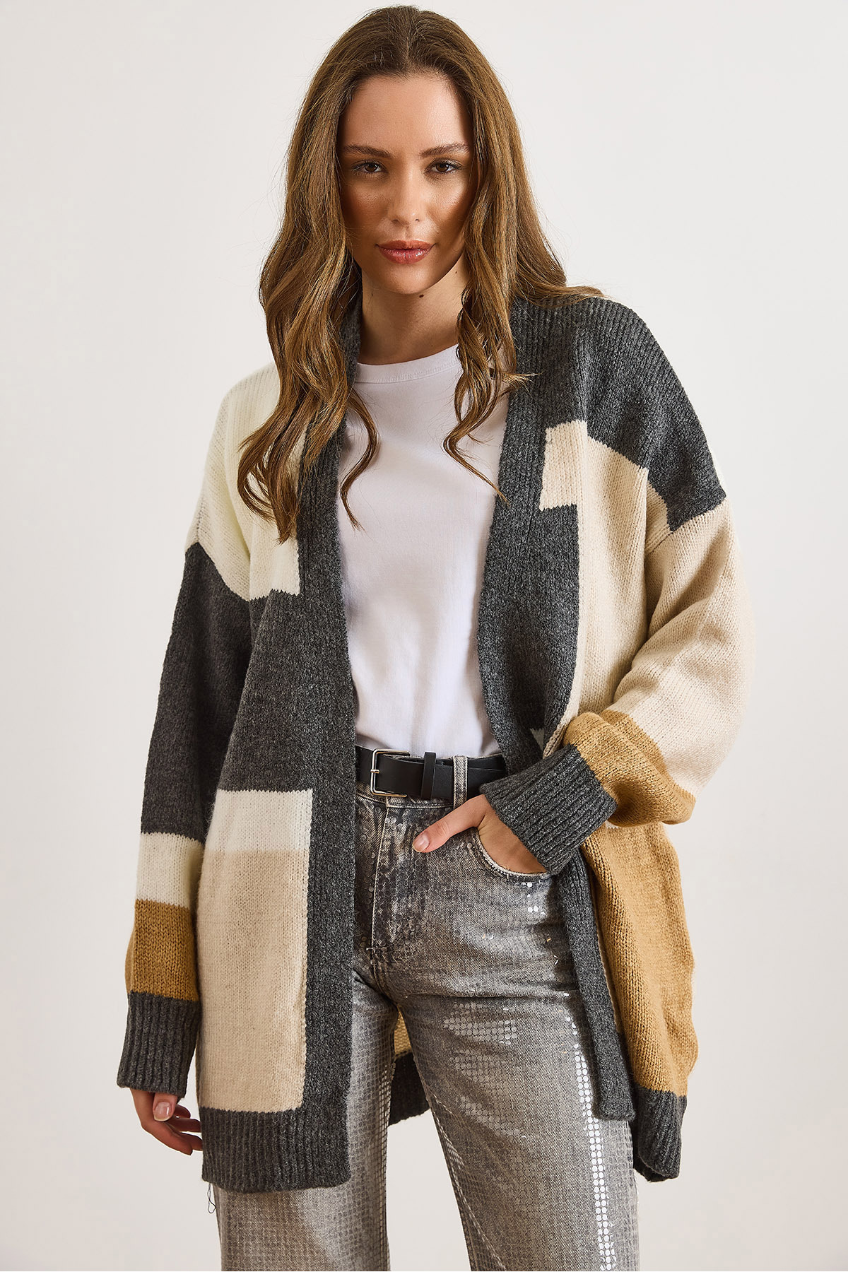 Kadın Gri Camel Renk Bloklu Oversize Triko Hırka HRK-19000442 Kadın Gri Camel Renk Bloklu Oversize Triko Hırka HRK-19000442 تک سایز