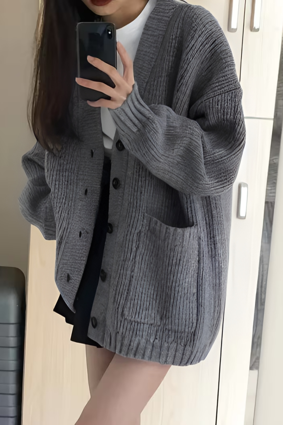 Kadın Oversize Cepli Düğmeli V Yaka Triko Hırka Kadın Oversize Cepli Düğmeli V Yaka Triko Hırka KDNHRK001 L/XL