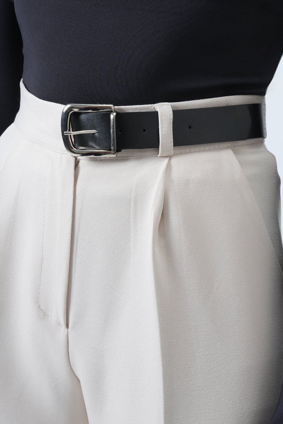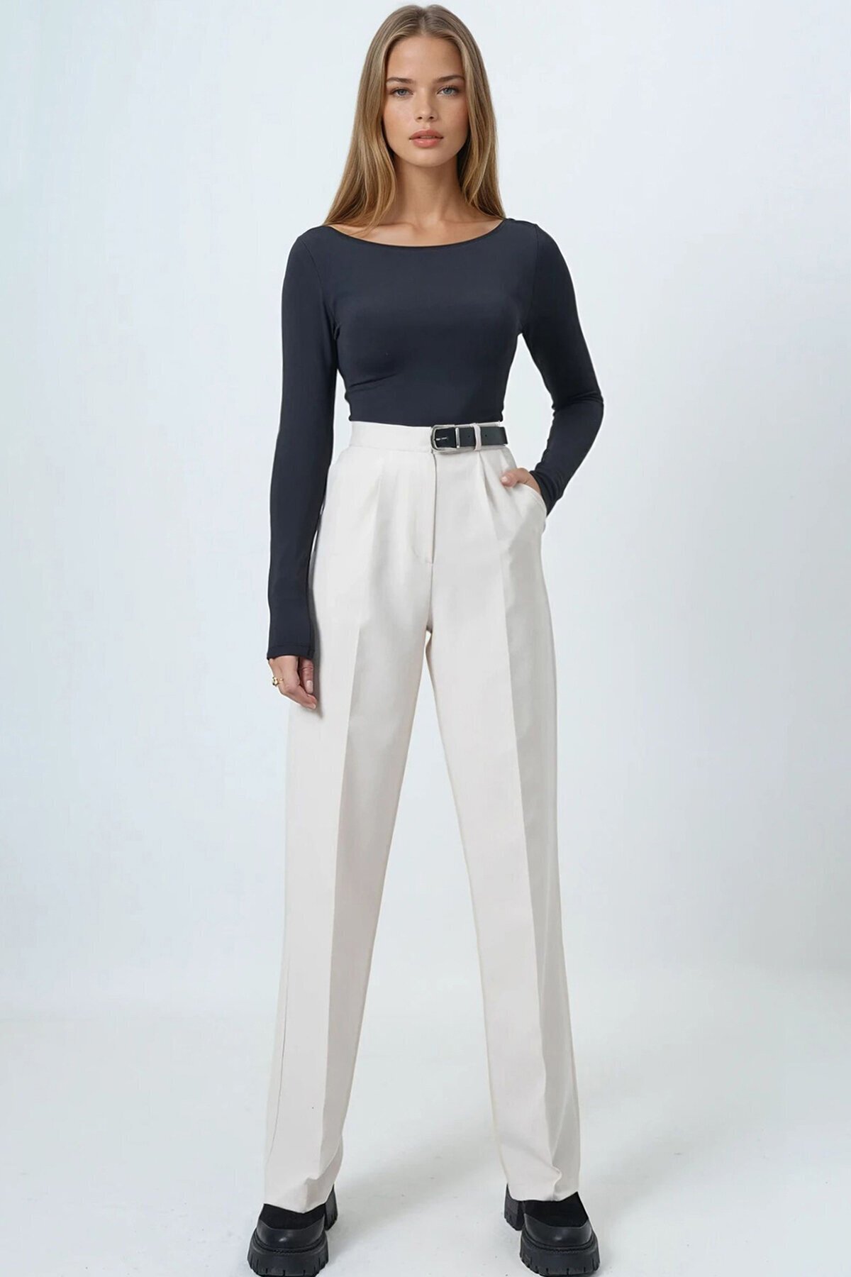 Kadın Krem Kemerli Düğme Kapamalı Çift Cepli Palazzo Pantolon Vs01458 Kadın Krem Kemerli Düğme Kapamalı Çift Cepli Palazzo Pantolon Vs01458 VS01458 46