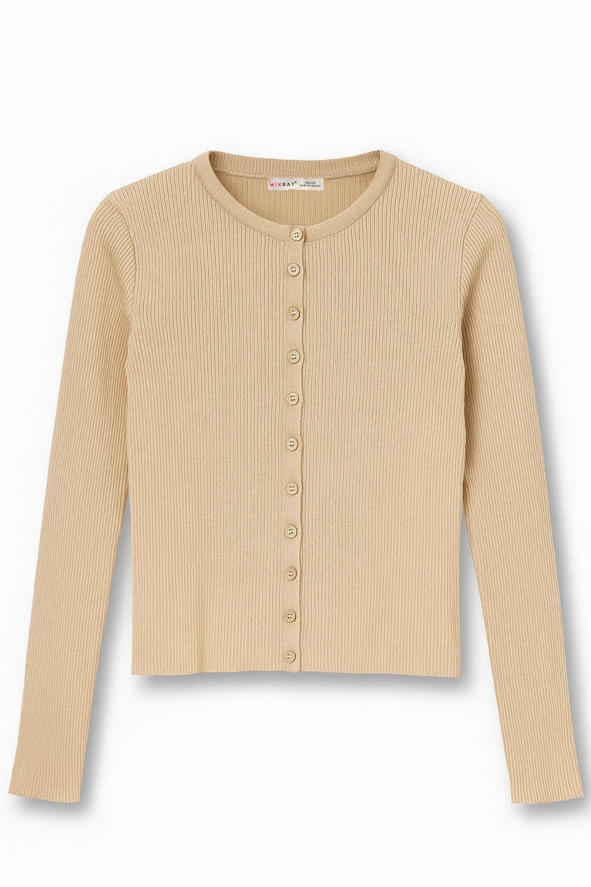 6931 Kadın Düğmeli Fitilli Triko Hırka Vizon 6931 Kadın Düğmeli Fitilli Triko Hırka Vizon Y25HRK6931 L