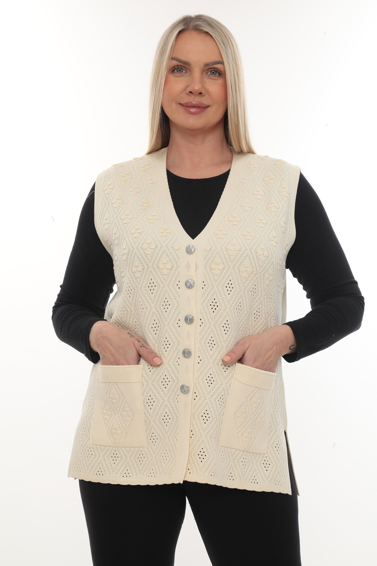 Kadın Triko Cepli Kışlık Kalın Desenli Anne Yelek Kadın Triko Cepli Kışlık Kalın Desenli Anne Yelek 3100YELEK 2XL
