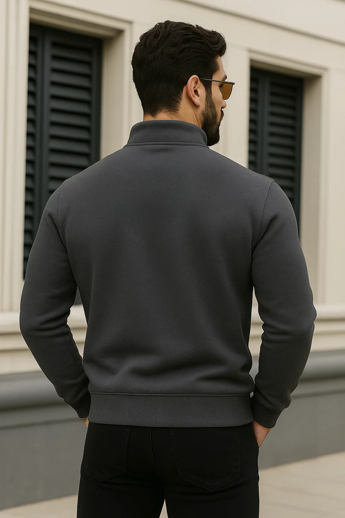 Erkek Trend Kışlık Antrasit Fermuarlı Sweatshirt Erkek Trend Kışlık Antrasit Fermuarlı Sweatshirt Ayna-1-33155DMJG 4XL