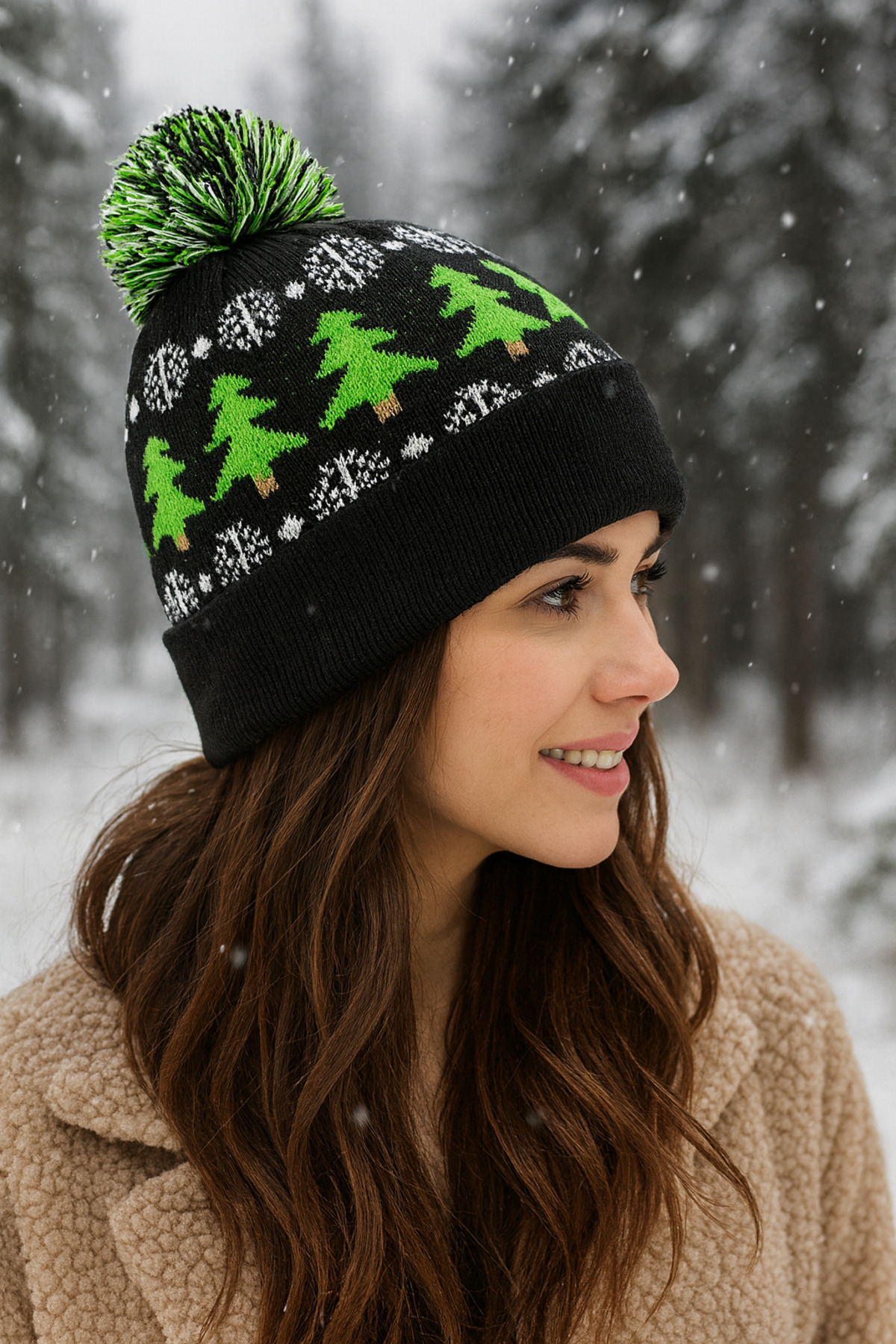 Unisex Kışlık Ponponlu Noel Temalı Triko Bere – Çam Ağacı & Kar Tanesi Desenli Unisex Kışlık Ponponlu Noel Temalı Triko Bere – Çam Ağacı & Kar Tanesi Desenli spkaa Standart