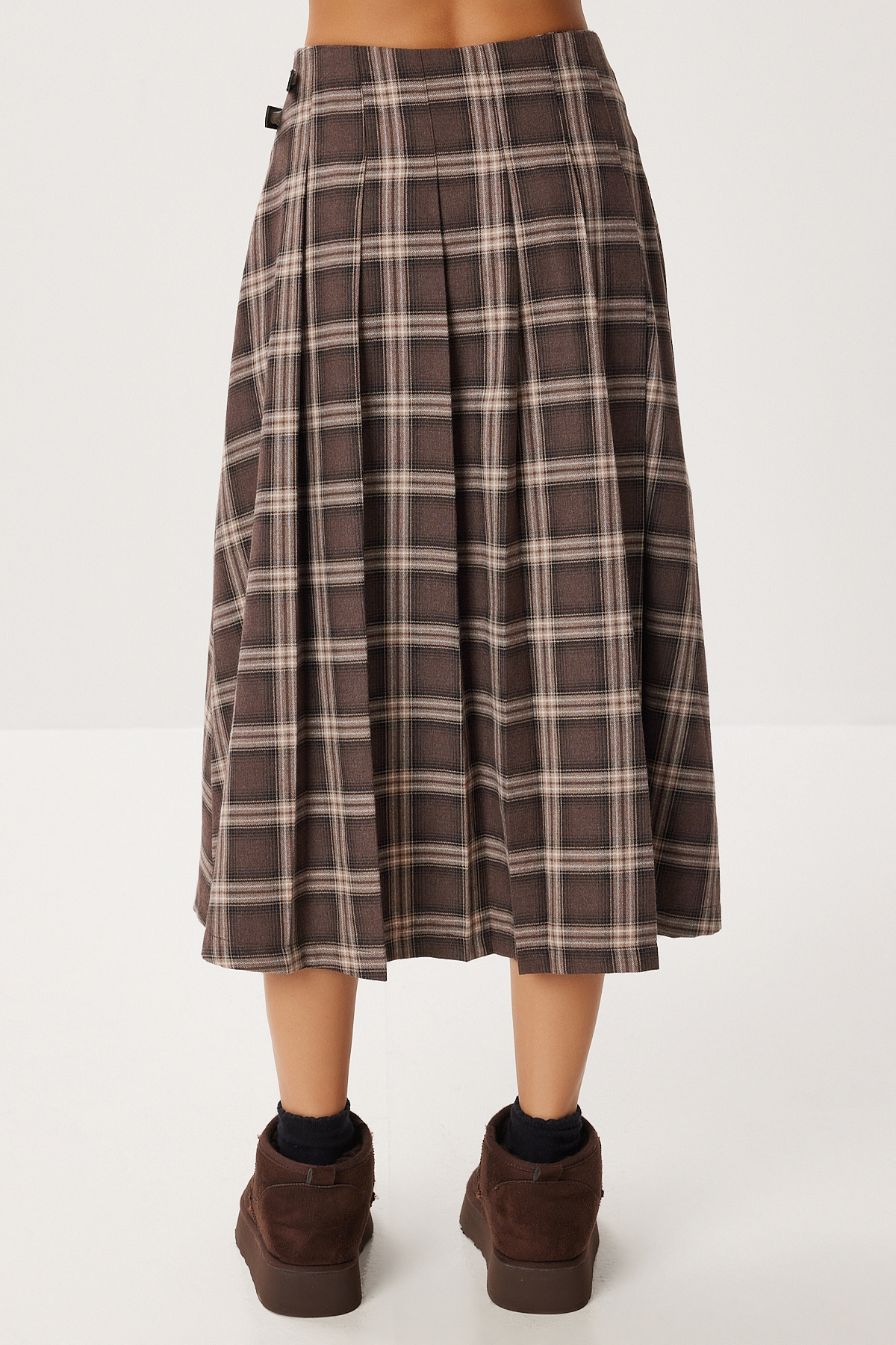 Kemerli Kareli Kloş Dokuma Etek LNS0015 KAHVERENGİ VİZON Kemerli Kareli Kloş Dokuma Etek LNS0015 KAHVERENGİ VİZON 38