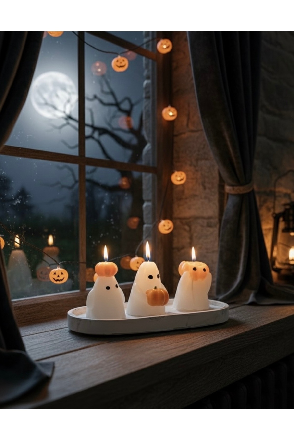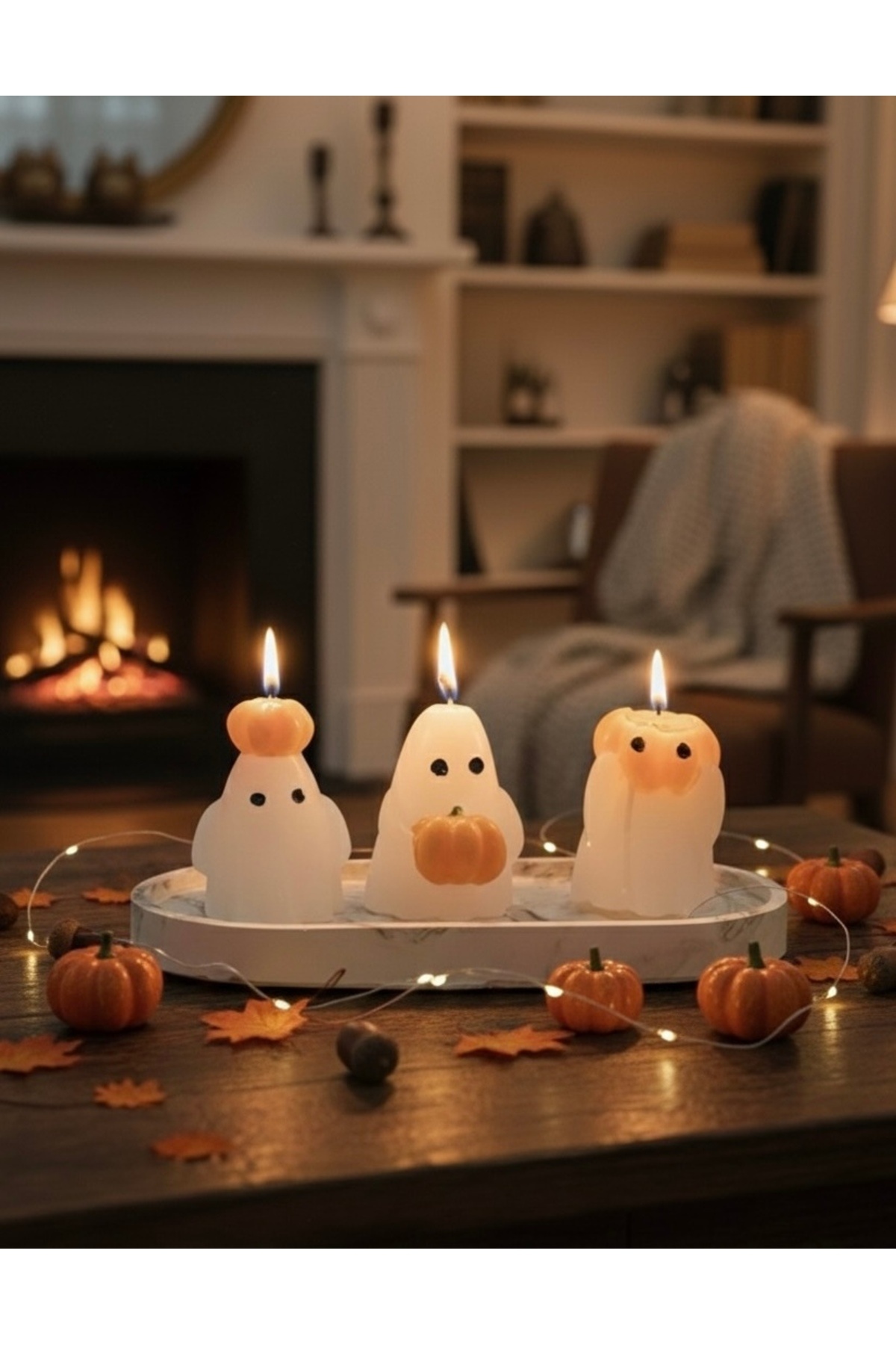 3'lü Hayalet Mum Seti & Balkabağı Temalı Dekoratif & Beyaz Beton Altlık 3'lü Hayalet Mum Seti & Balkabağı Temalı Dekoratif & Beyaz Beton Altlık mum0107 تک سایز