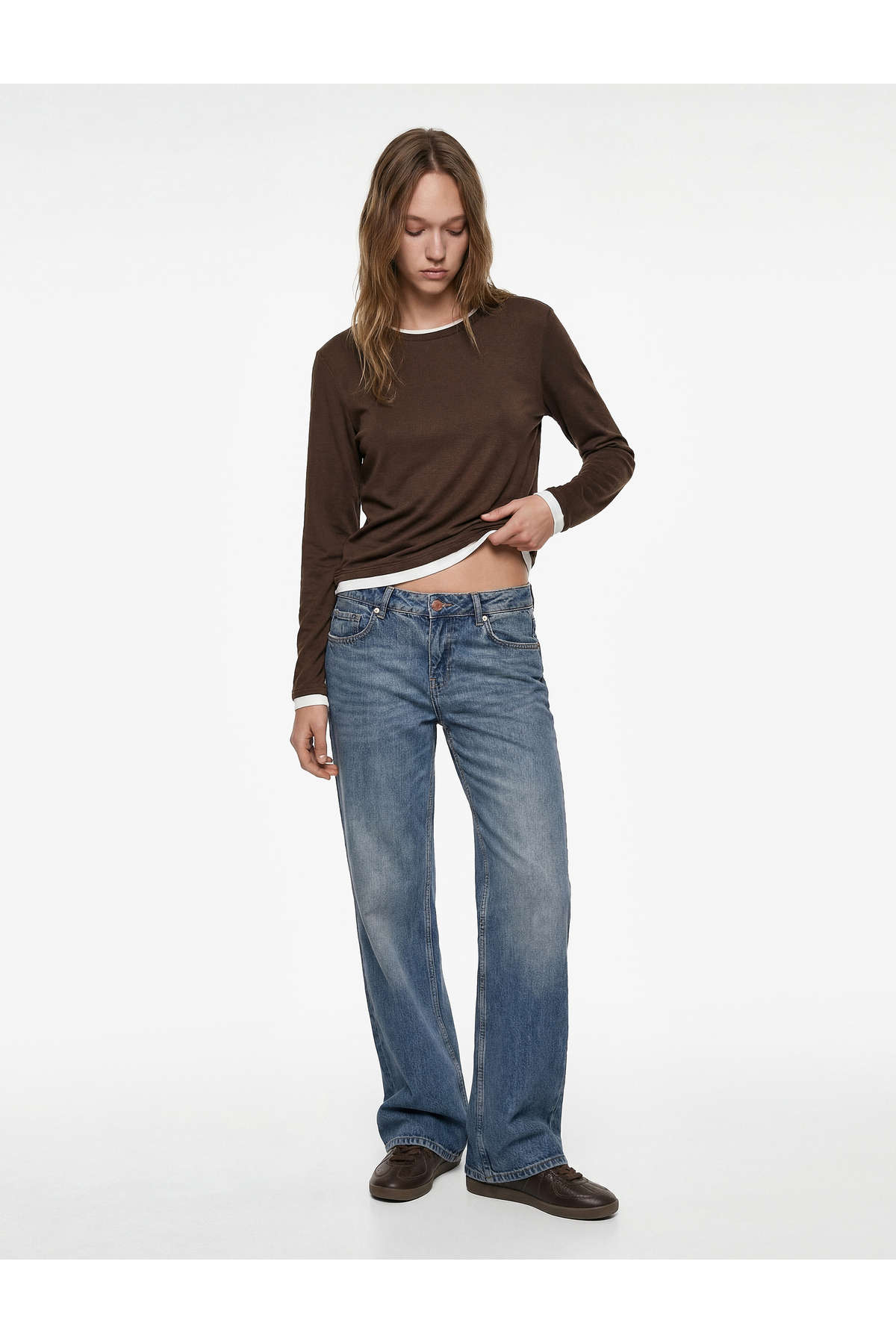 Slim Fit Bisiklet Yaka Viskon Karışımlı Uzun Kollu Tişört Slim Fit Bisiklet Yaka Viskon Karışımlı Uzun Kollu Tişört 6WAL10576IK XL