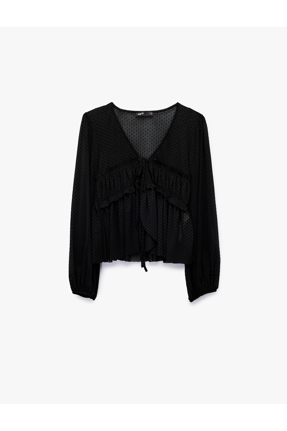 Uzun Kollu Fırfırlı Yaka Volanlı Puantiyeli Bluz Uzun Kollu Fırfırlı Yaka Volanlı Puantiyeli Bluz 6WAK60238UW 44