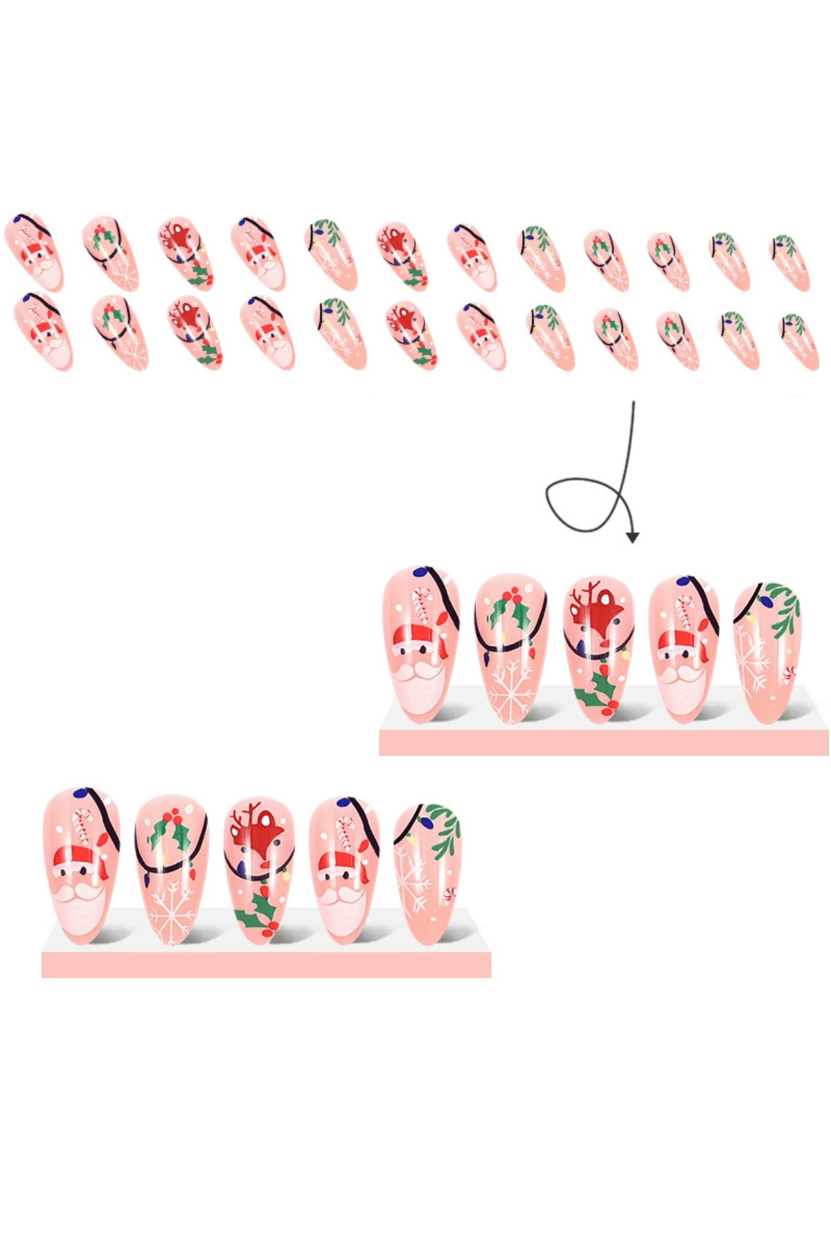 Yılbaşı Desenli Açık Pembe Badem Takma Tırnak Seti (24 Adet) Yılbaşı Desenli Açık Pembe Badem Takma Tırnak Seti (24 Adet) TACHRIS تک سایز