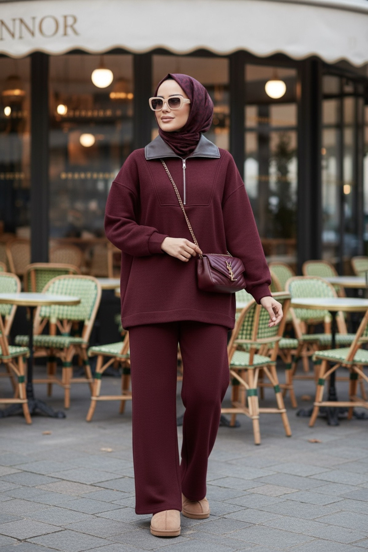 Oslo Comfort Set – Selanik Kumaş İkili Tesettür Takım Bordo Oslo Comfort Set – Selanik Kumaş İkili Tesettür Takım Bordo Asel-A4143 2