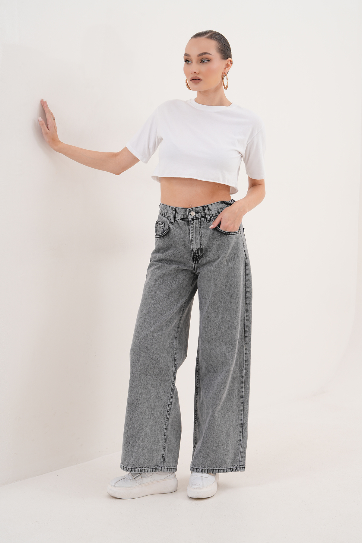 BELİ LASTİKLİ GRİ KOT PANTOLON BELİ LASTİKLİ GRİ KOT PANTOLON 1700-15 30