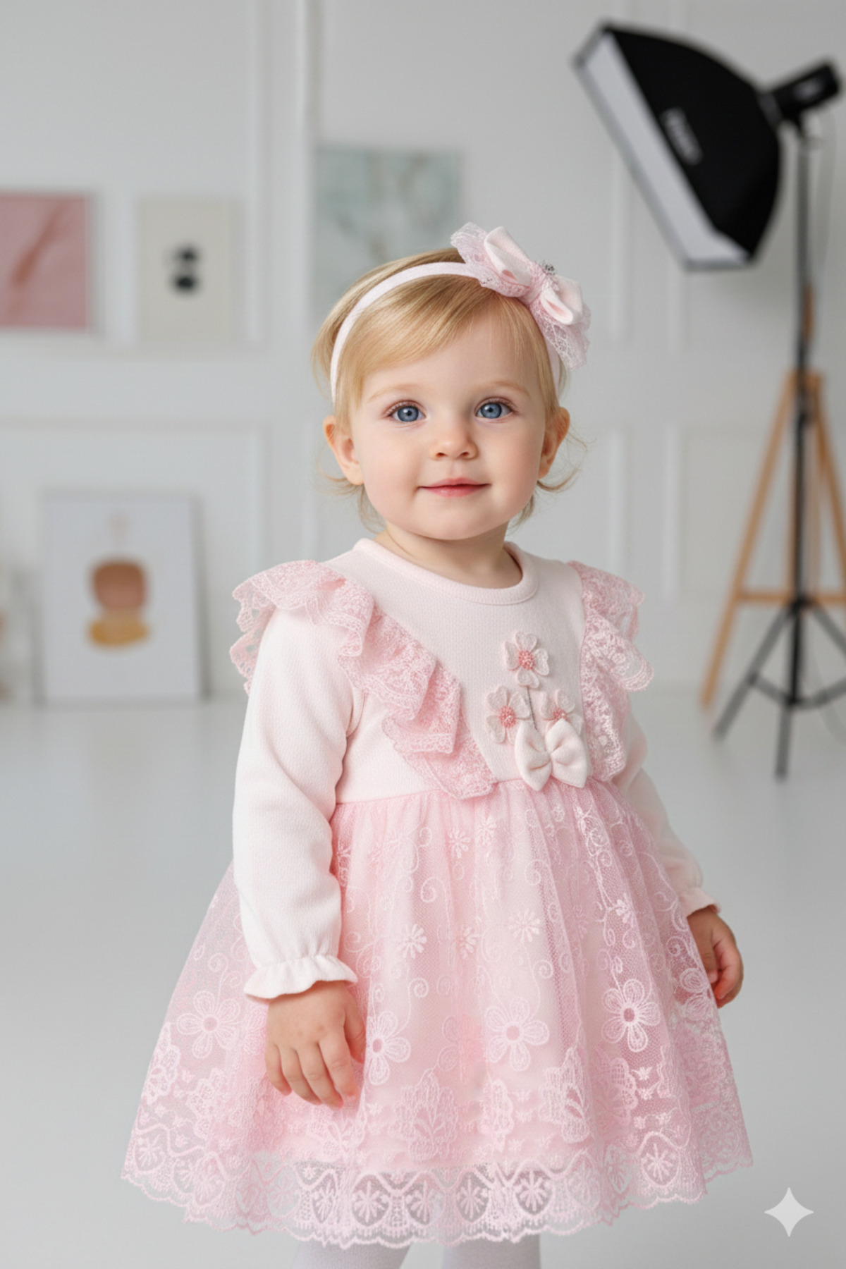 Kız Bebek Mevlütlük Elbise Bandanalı Dantelli ELB1066 Kız Bebek Mevlütlük Elbise Bandanalı Dantelli ELB1066 9 - 12 Ay