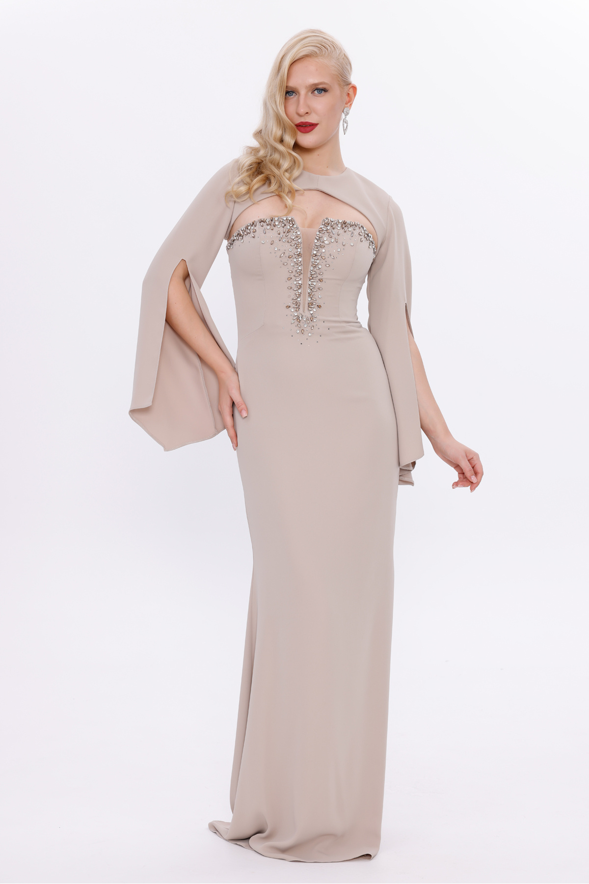 Taş İşlemeli Bolerolu Krep Uzun Premium Abiye Elbise Taş İşlemeli Bolerolu Krep Uzun Premium Abiye Elbise 0341 42