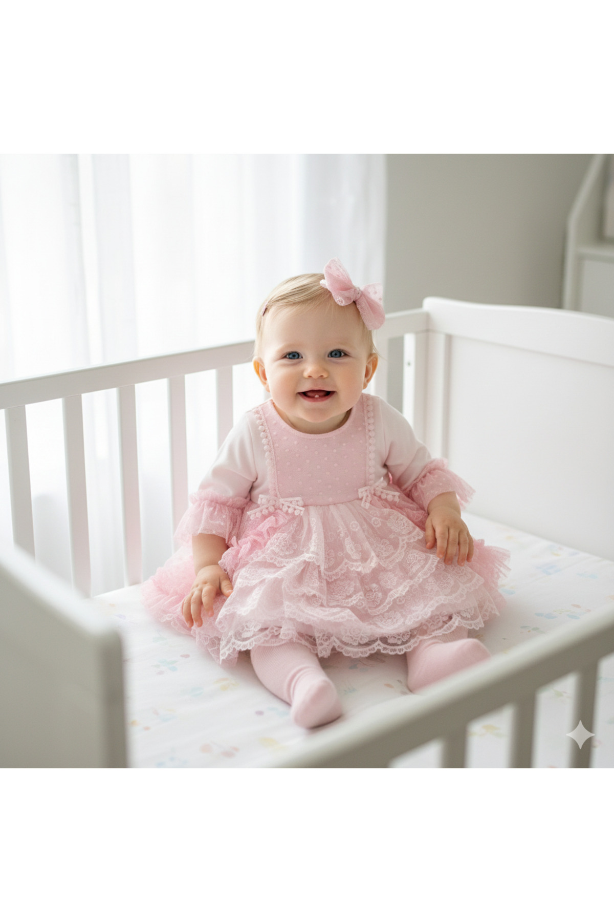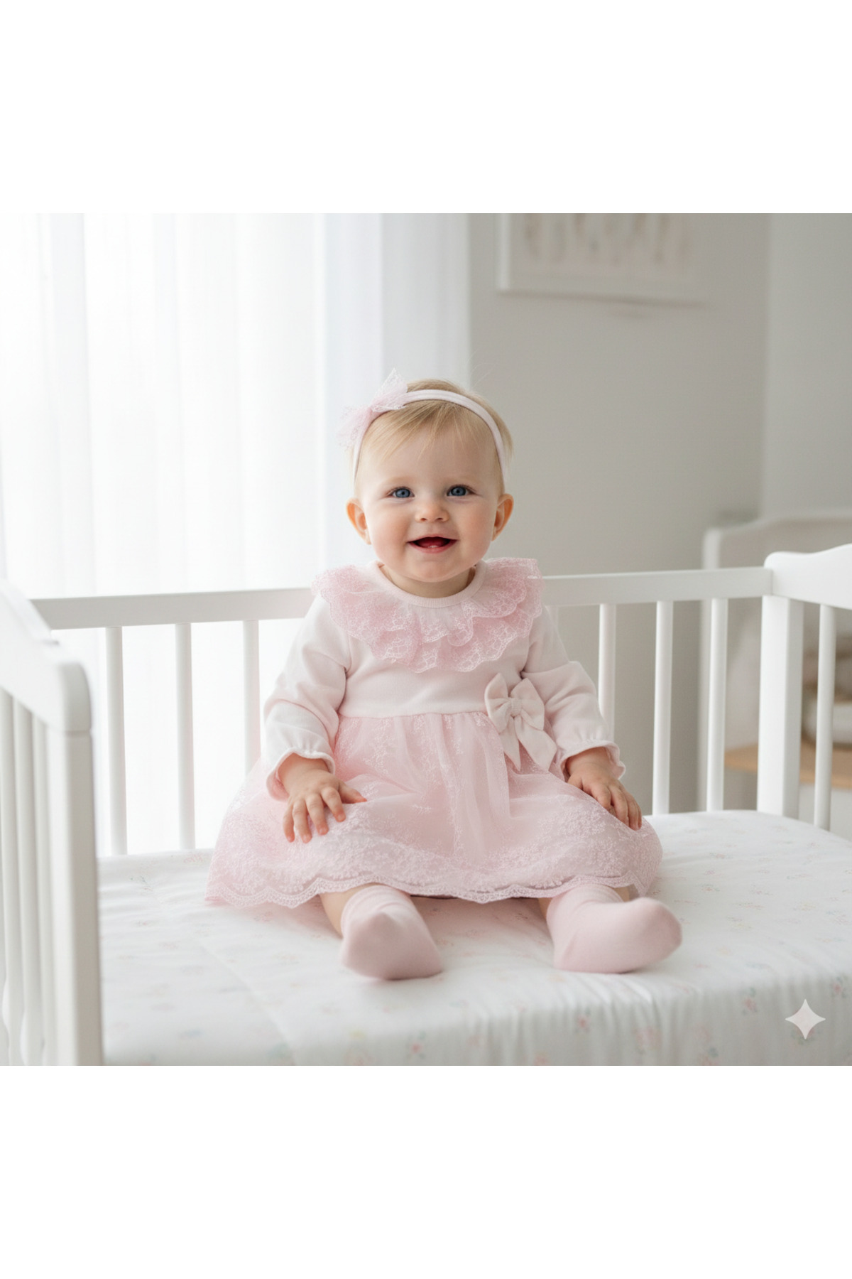 Kız Bebek Mevlütlük Elbise Bandanalı Dantelli ELB1072 Kız Bebek Mevlütlük Elbise Bandanalı Dantelli ELB1072 9 - 12 Ay