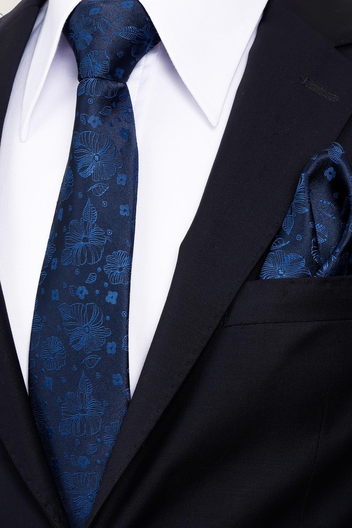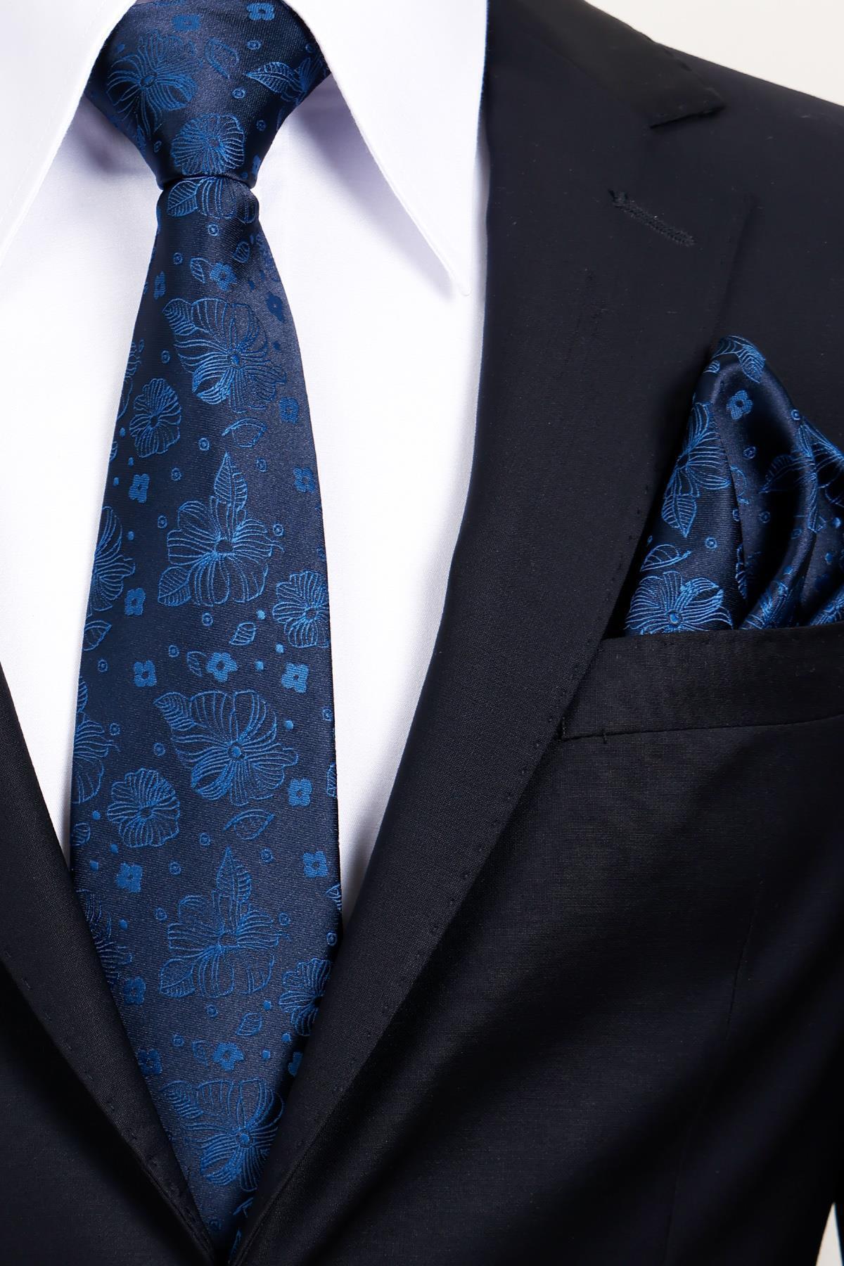 8 Cm Klasik Geniş Hand Made Lacivert - Mavi Çiçek Desen Mendilli Kravat 8 Cm Klasik Geniş Hand Made Lacivert - Mavi Çiçek Desen Mendilli Kravat ESG115KRM1197 تک سایز