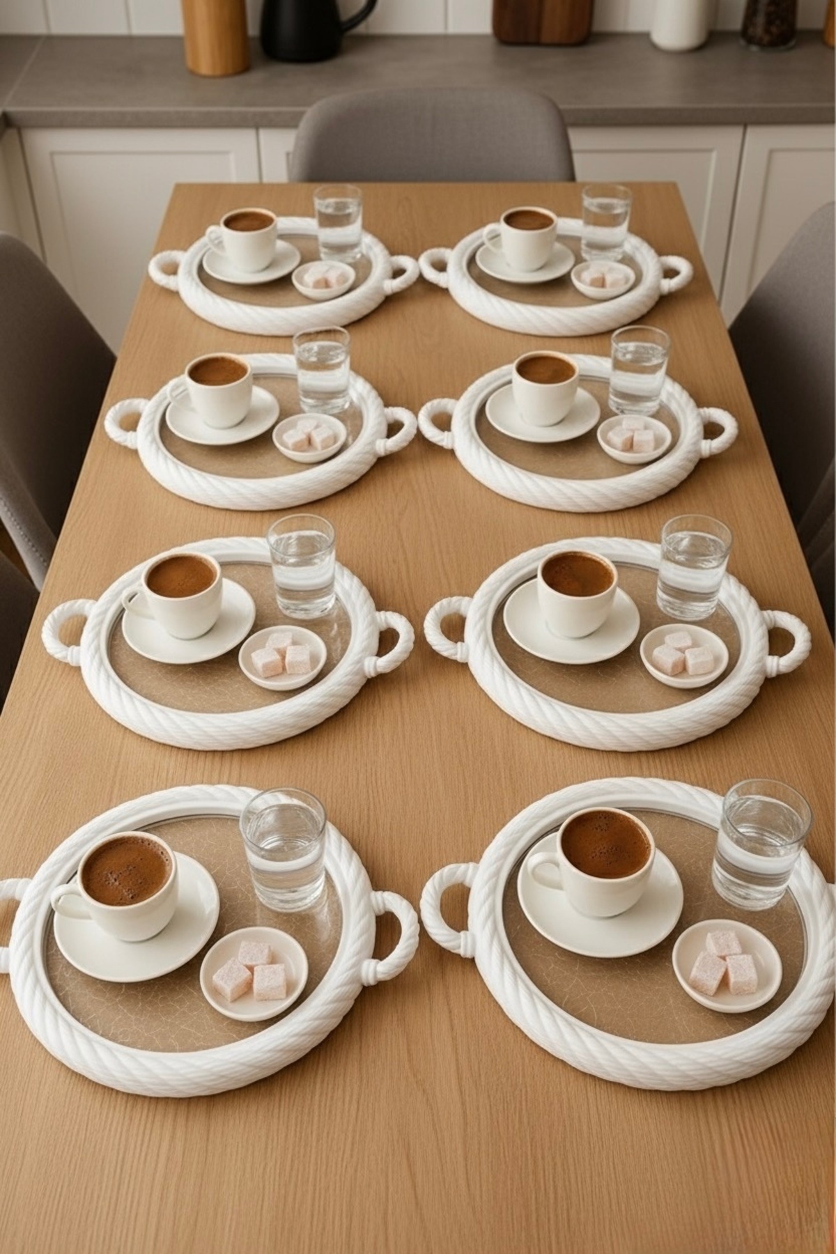 6 Adet Kahve Sunum Tepsisi örgü desenli Yuvarlak plastik Beyaz 6 Adet Kahve Sunum Tepsisi örgü desenli Yuvarlak plastik Beyaz ktch123 تک سایز