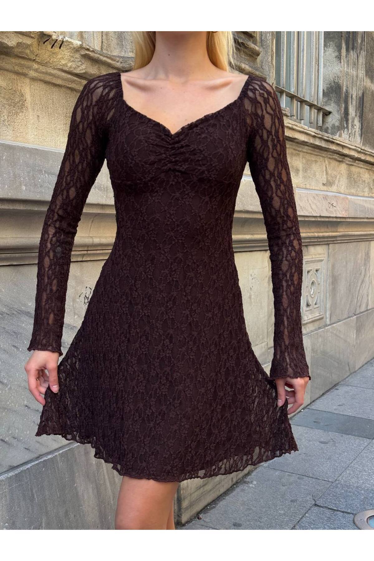 Kadın Dantelli Uzun İspanyol Kol Kayık Yaka Mini Parti Elbisesi Kadın Dantelli Uzun İspanyol Kol Kayık Yaka Mini Parti Elbisesi parti L