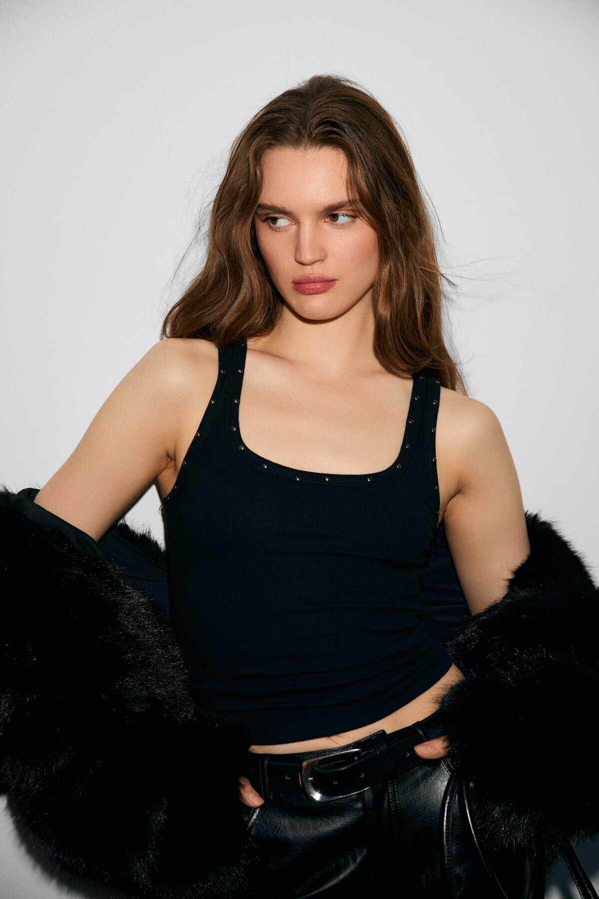LILLESOL STARLIT Kadın Yumuşak Ve Esnek Kumaşlı Organik Pamuklu Taşlı Siyah Atlet LILLESOL STARLIT Kadın Yumuşak Ve Esnek Kumaşlı Organik Pamuklu Taşlı Siyah Atlet STARLIT01082025 XL