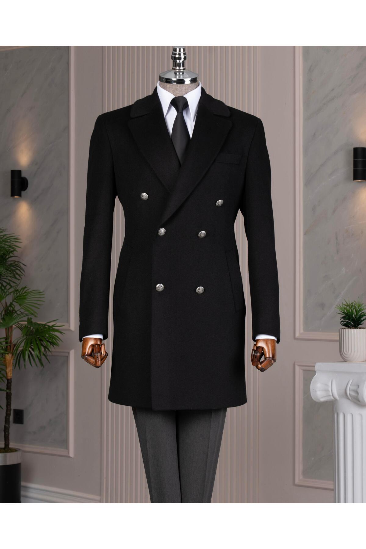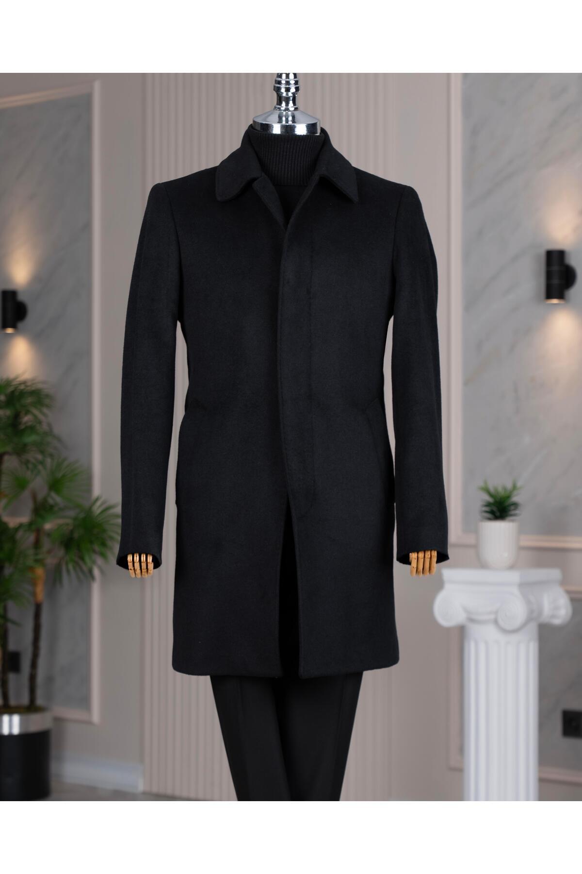 İtalyan stil slim fit sivri yaka yün karışımlı kaşe erkek kaban siyah T14721 İtalyan stil slim fit sivri yaka yün karışımlı kaşe erkek kaban siyah T14721 58