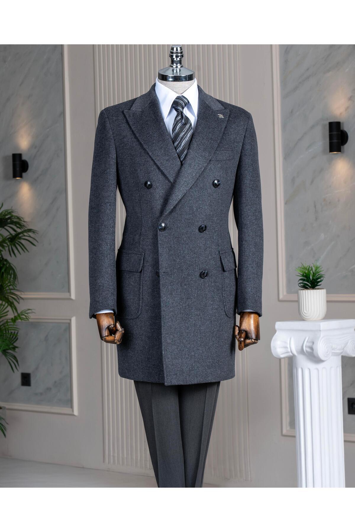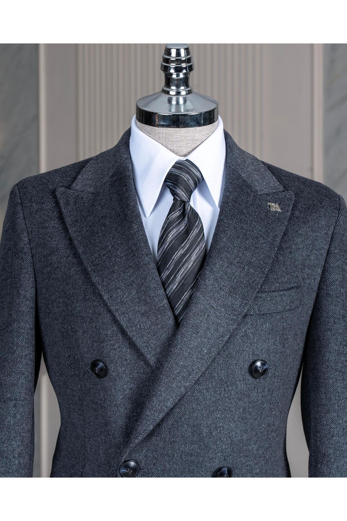 İtalyan stil slim fit kruvaze yün karışımlı kaşe erkek kaban antrasit T14690 İtalyan stil slim fit kruvaze yün karışımlı kaşe erkek kaban antrasit T14690 58