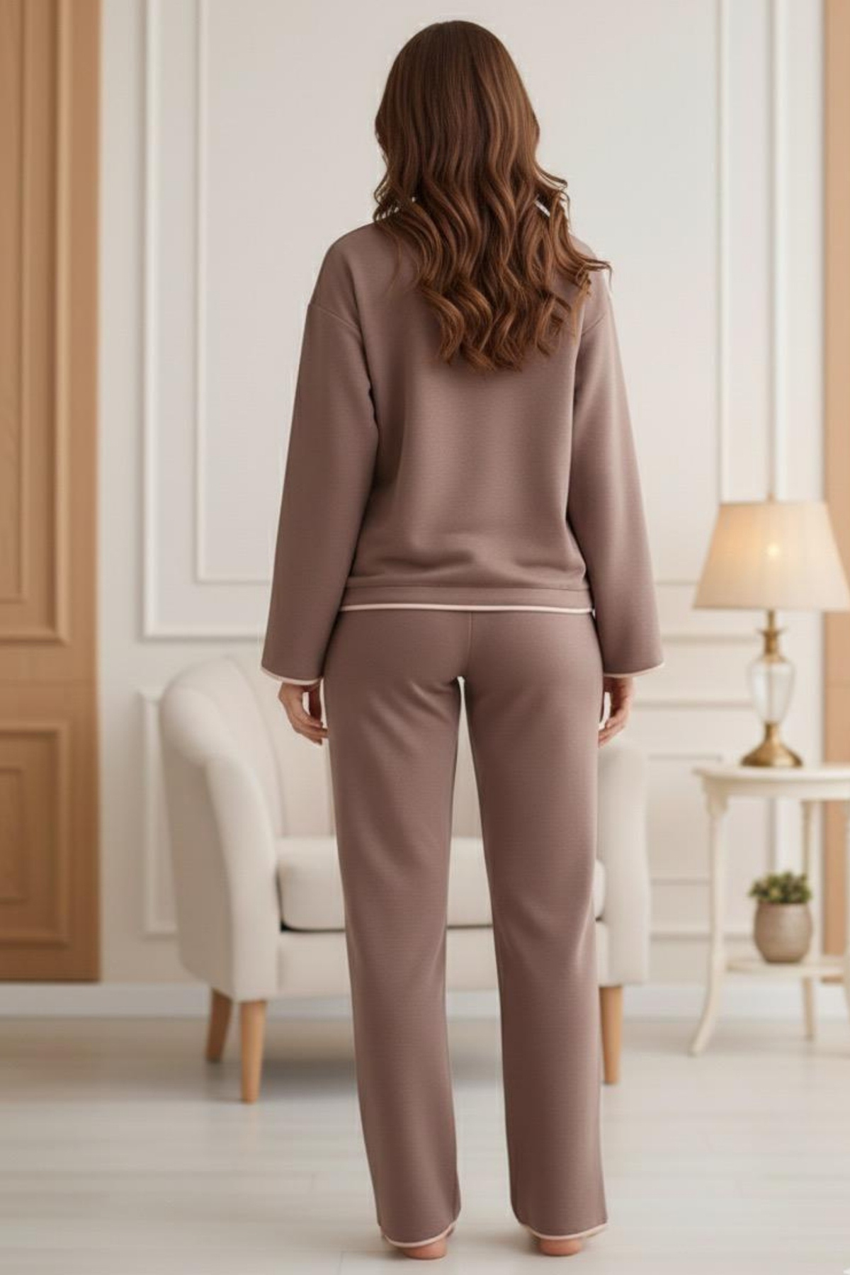 Kol/Etek Ucu Biye Detaylı İçi Leopar Yazı ve Kalp Baskılı Geniş Kol Pijama Takımı Kol/Etek Ucu Biye Detaylı İçi Leopar Yazı ve Kalp Baskılı Geniş Kol Pijama Takımı 8492 XL