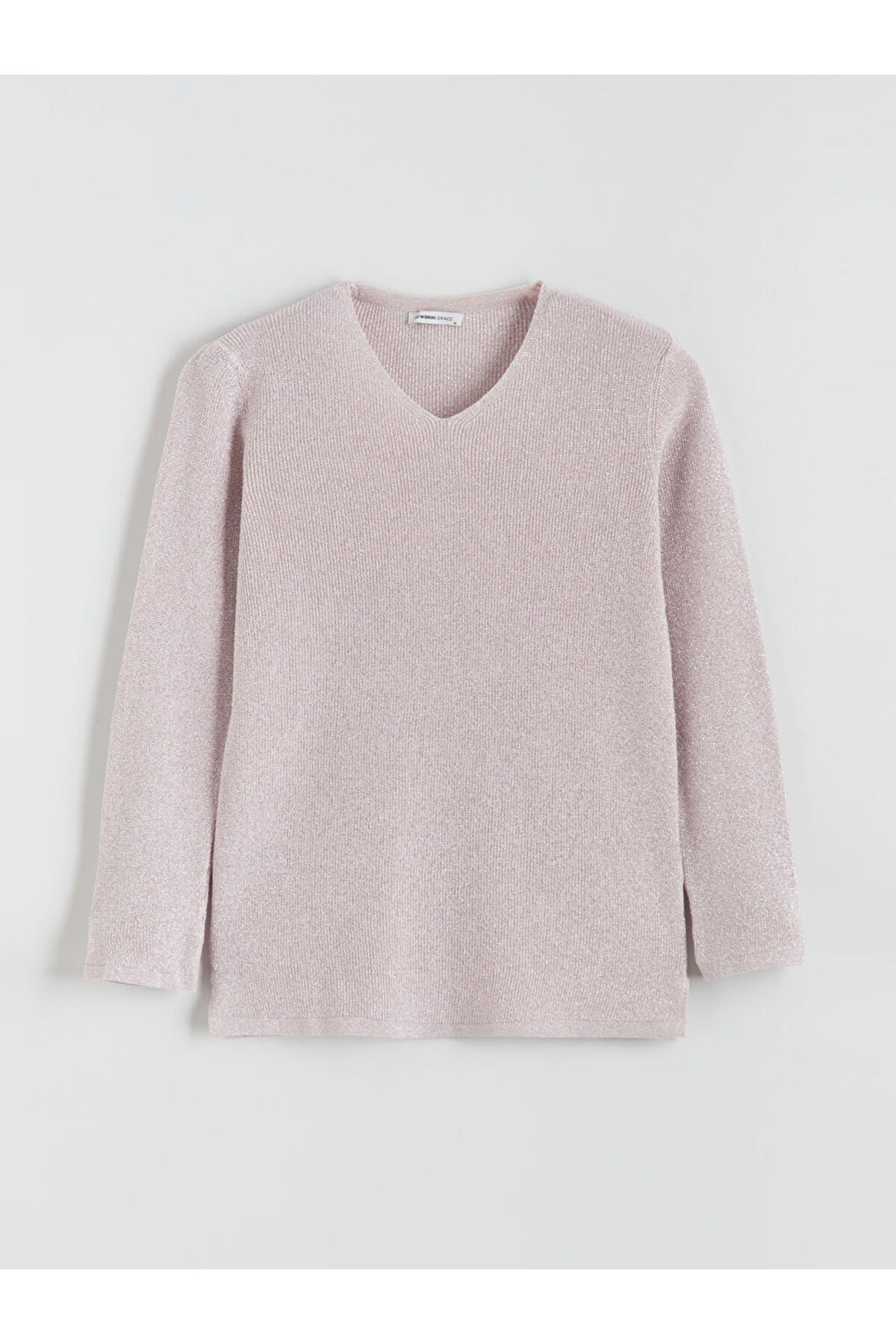 Pembe V Yaka Kadın Triko Kazak Pembe V Yaka Kadın Triko Kazak TYCA60C773873204E37750E00 4XL