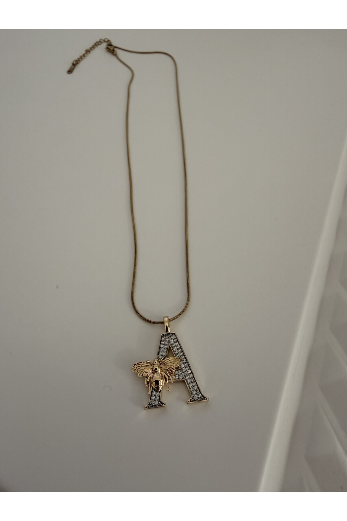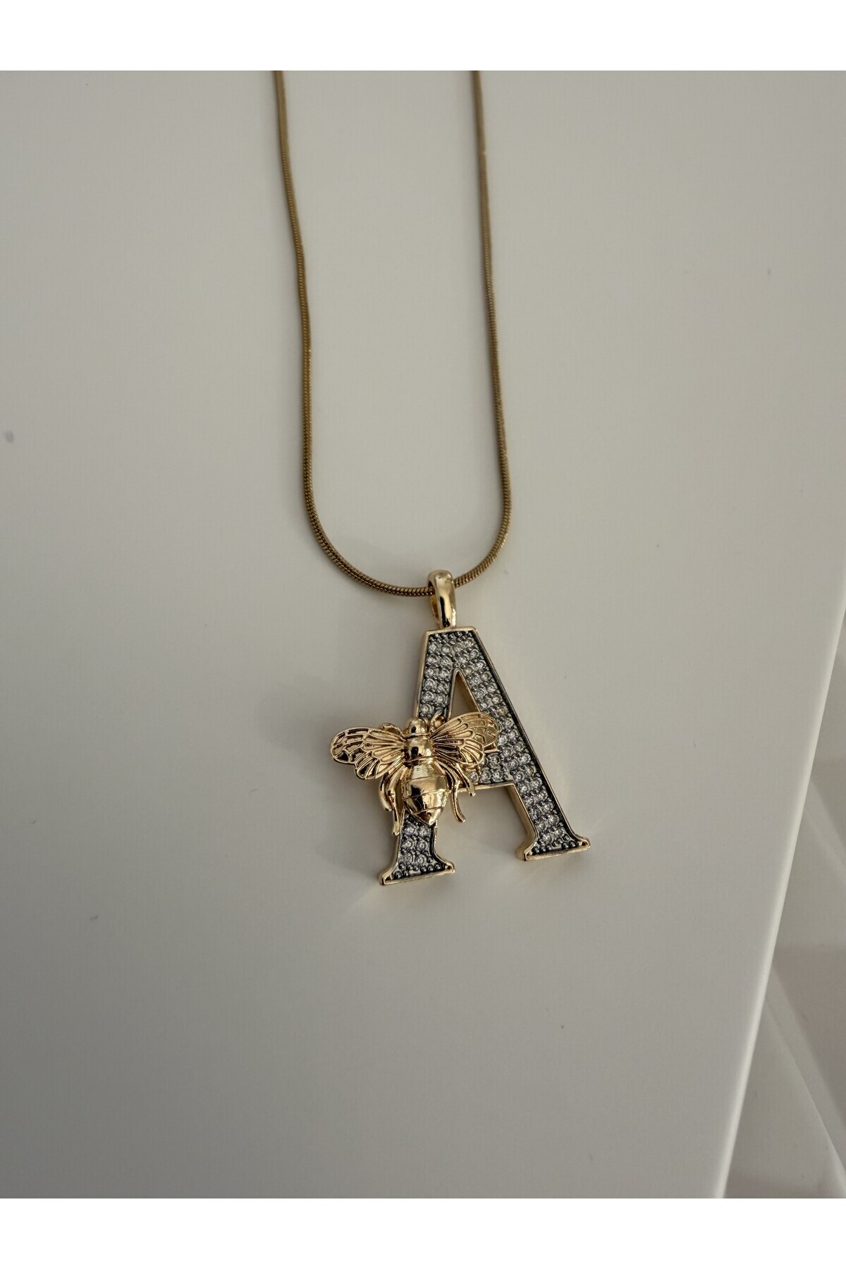 ZİRKON TAŞLI,GOLD RENK, ARI DETAYLI, ŞIK TASARIM ÇELİK HARF KOLYE ZİRKON TAŞLI,GOLD RENK, ARI DETAYLI, ŞIK TASARIM ÇELİK HARF KOLYE HARFARI 40-45