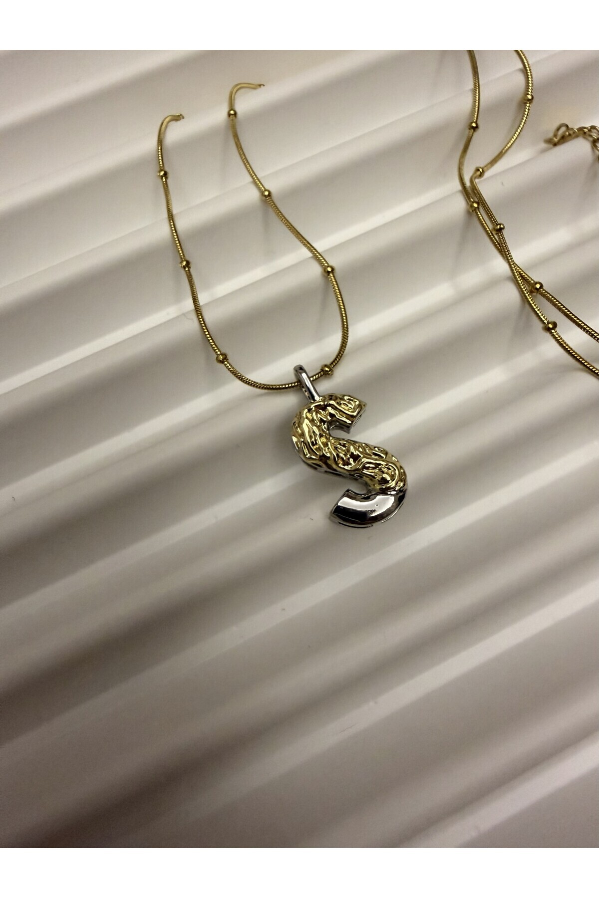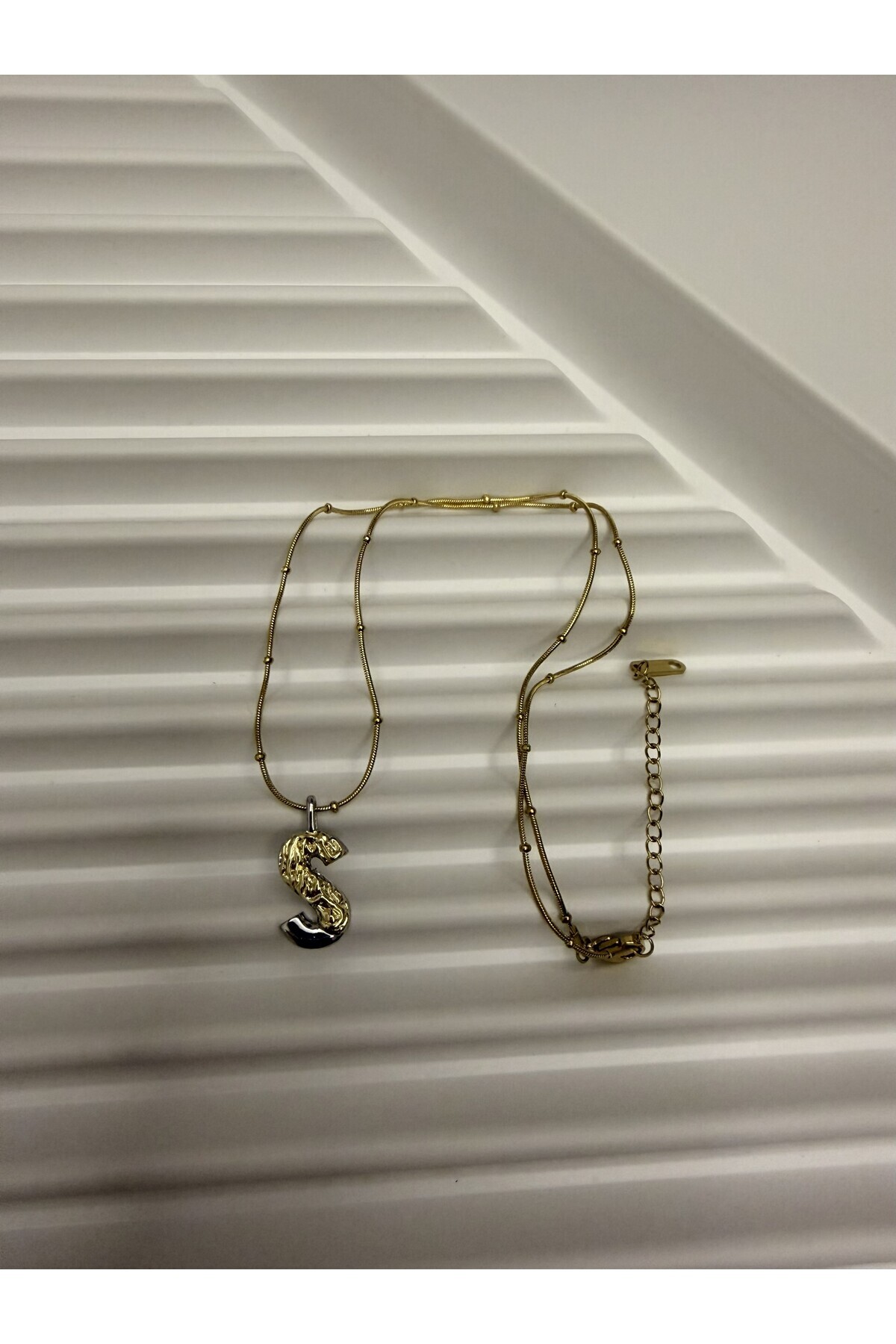 ÇELİK, ŞIK ZİNCİR DETAYLI ,İKİ RENKLİ , TASARIM HARF KOLYE ÇELİK, ŞIK ZİNCİR DETAYLI ,İKİ RENKLİ , TASARIM HARF KOLYE SRYHARFTASARIM 40-45