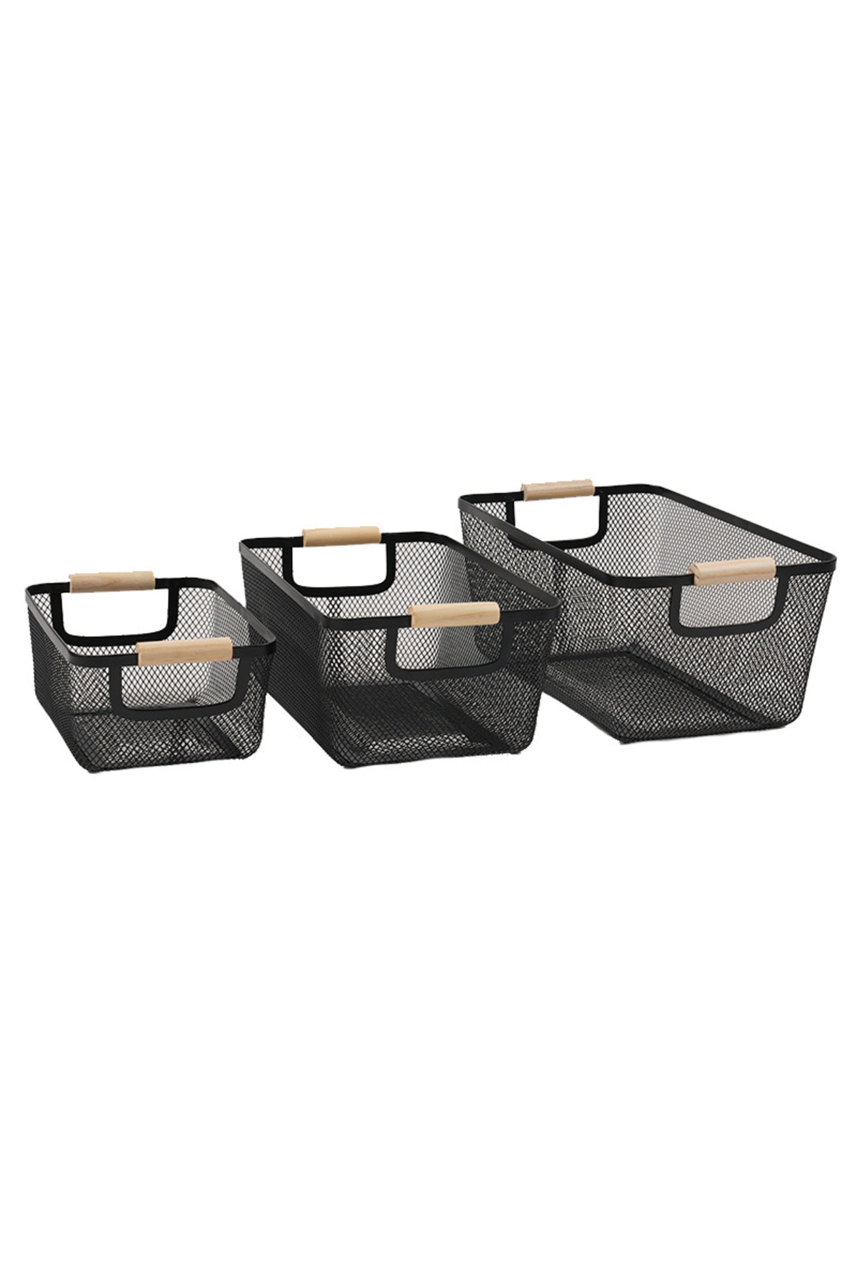 Dikdörtgen Siyah Metal Hasır Sepet Ahşap Saplı Organizer Mutfak Banyo Dolap İçi Düzenleyici Dikdörtgen Siyah Metal Hasır Sepet Ahşap Saplı Organizer Mutfak Banyo Dolap İçi Düzenleyici VD9351 تک سایز